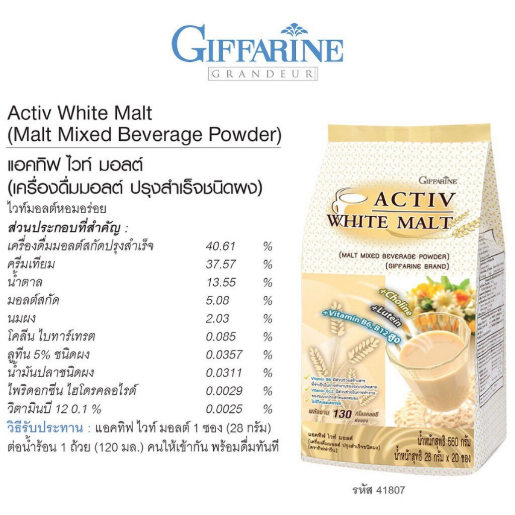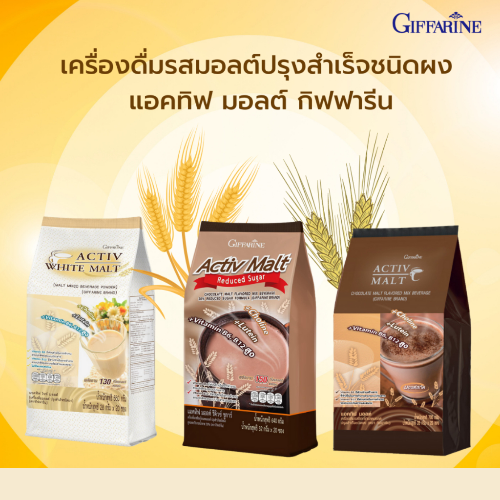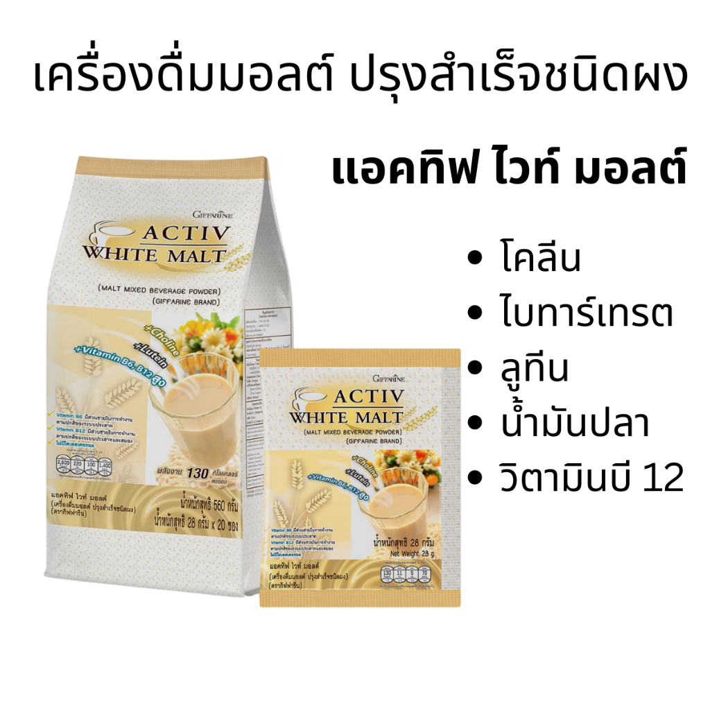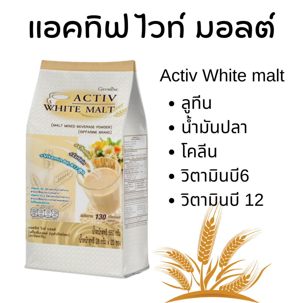 แอคทิฟ ไวท์ มอลต์ กิฟฟารีน Activ White malt เครื่องดื่มมอลต์ โคลีน ลูทีน