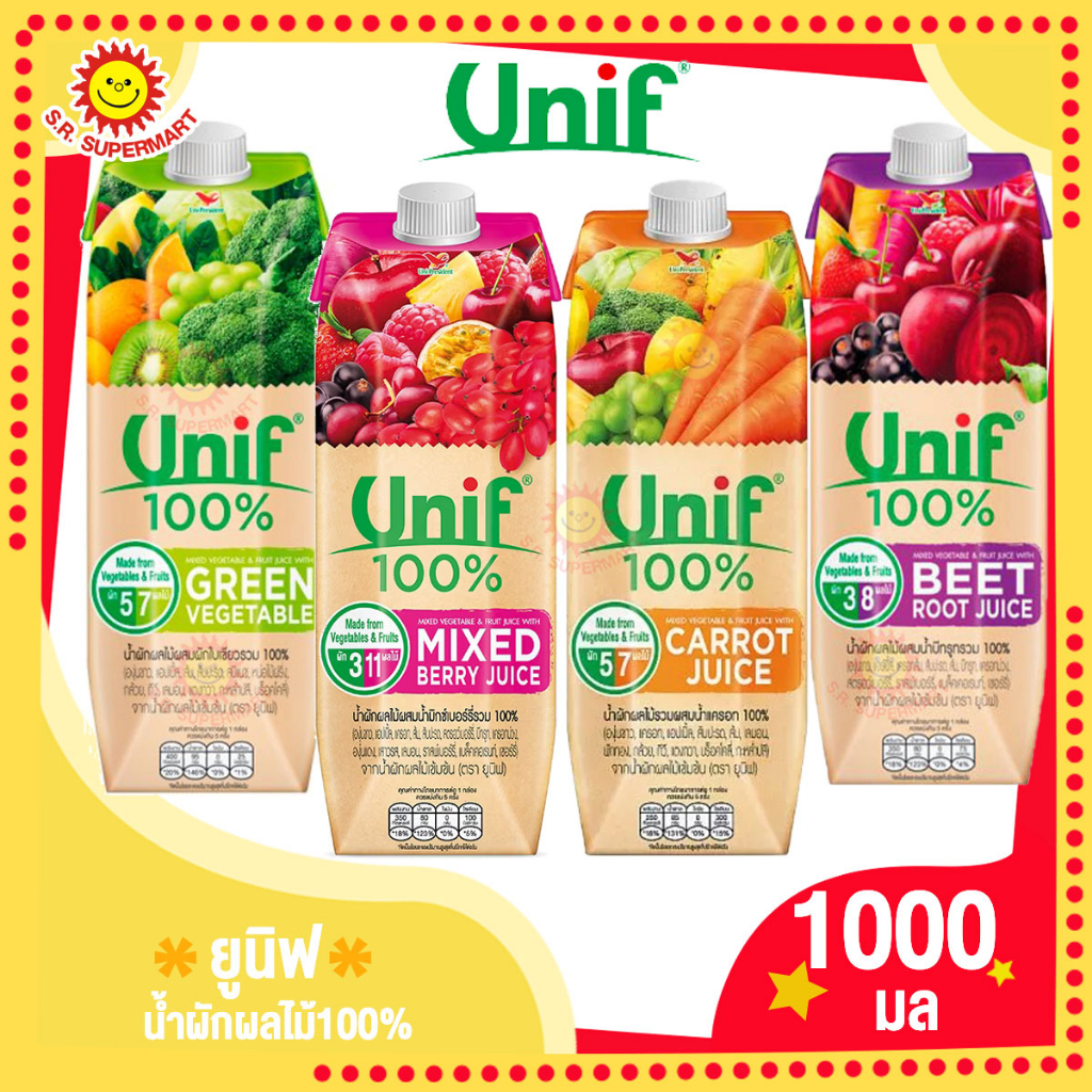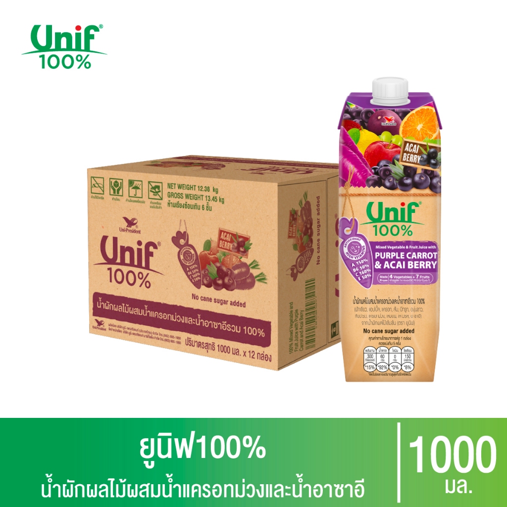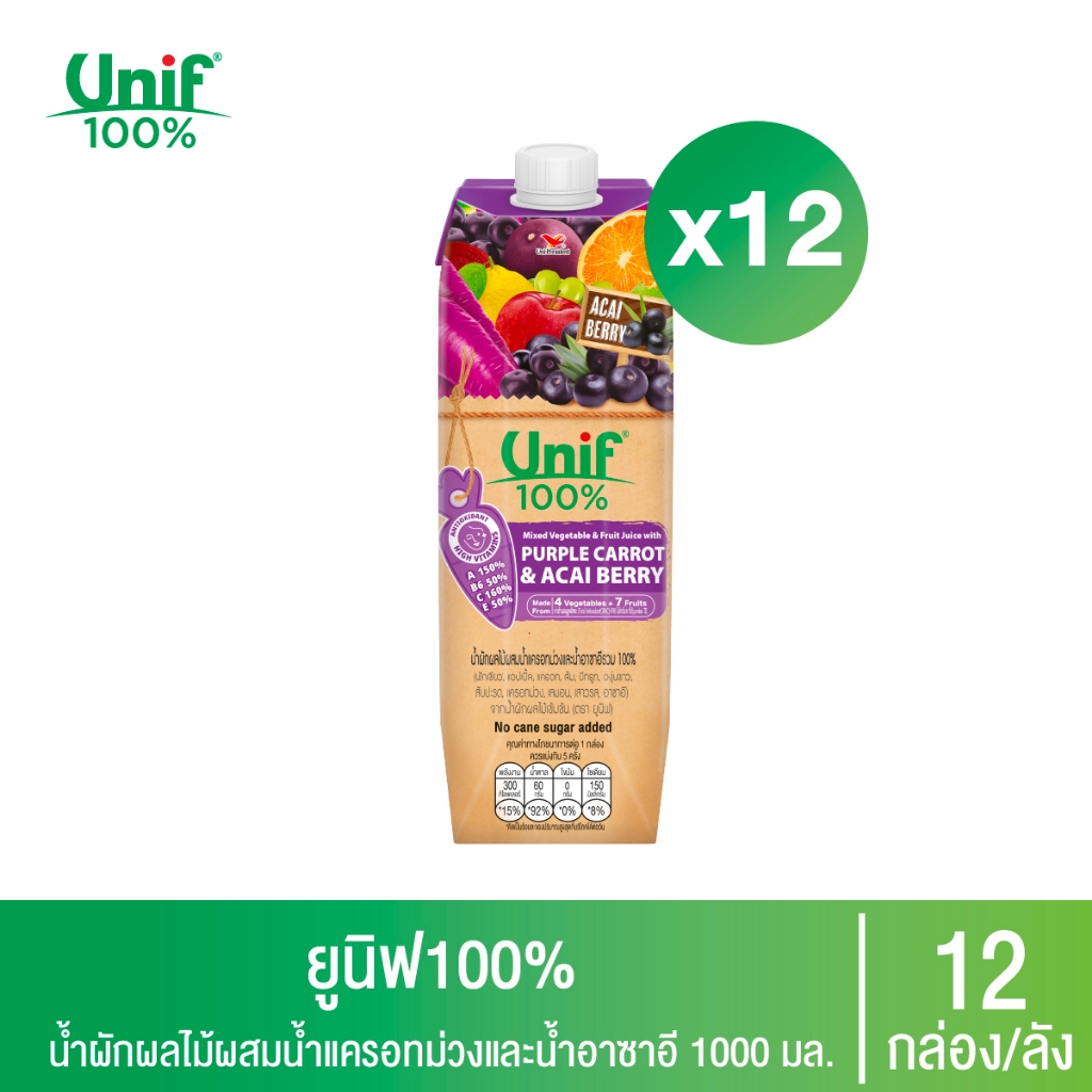 [ยกลัง 12 กล่อง] Unif 100% น้ำผักผลไม้ผสมน้ำแครอทม่วงและน้ำอาซาอี 100% 1000 มล.