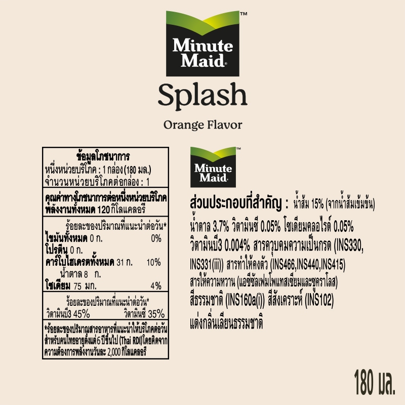 [จัดส่งเฉพาะกทม. ปริมณฑลและชลบุรี] มินิทเมด สแปลช น้ำส้ม 15% จากน้ำส้มเข้มข้น 180 มล. 6 กล่อง