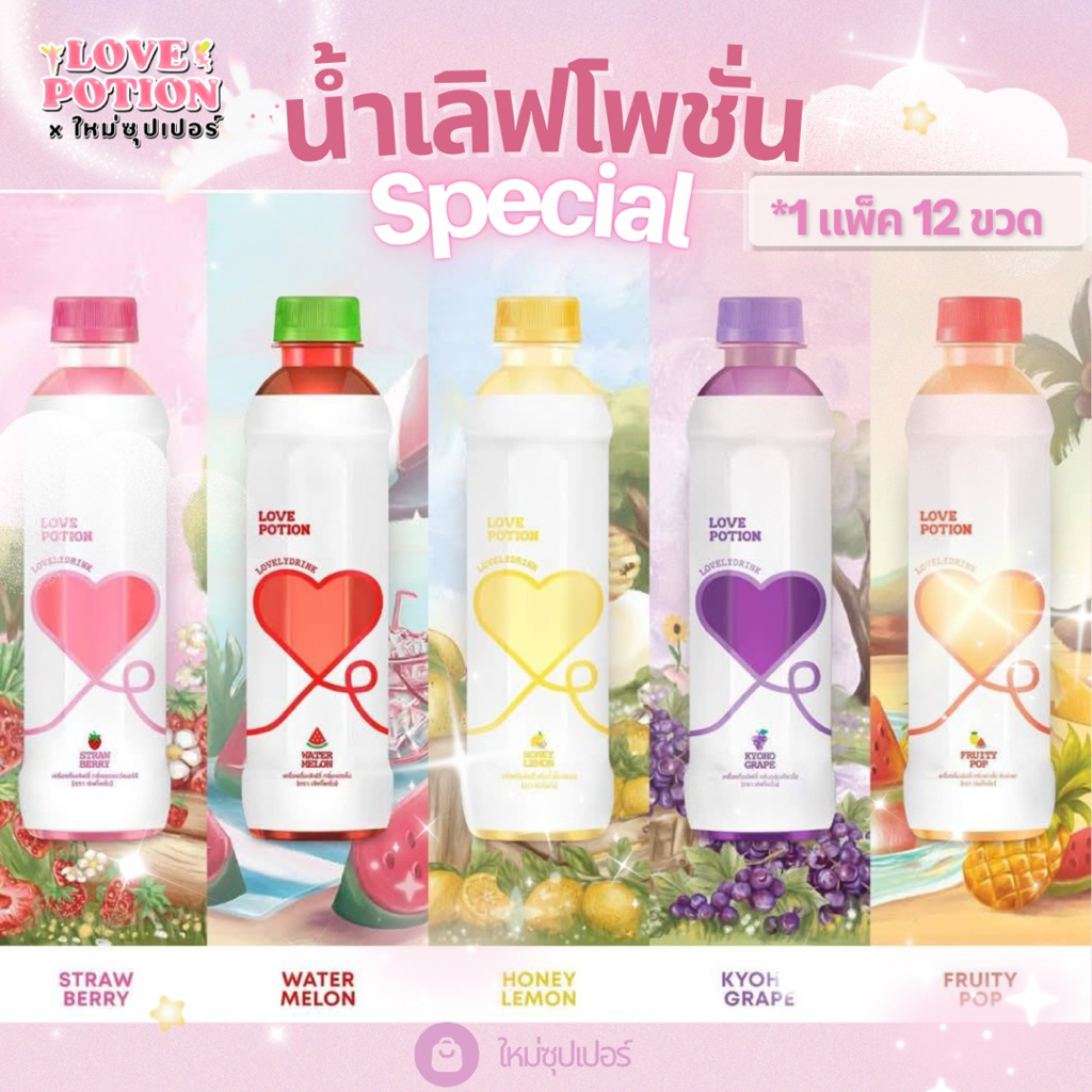 [ยกแพ็ค 12 ขวด] ตรงจากบริษัท น้ำเลิฟโพชั่น Lovepotion Lovelydrink พร้อมส่งทุกรสชาติ ขนาด 330 ml.