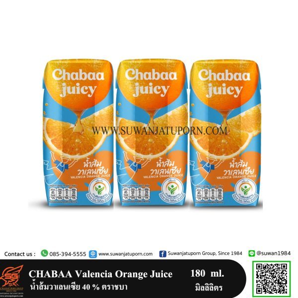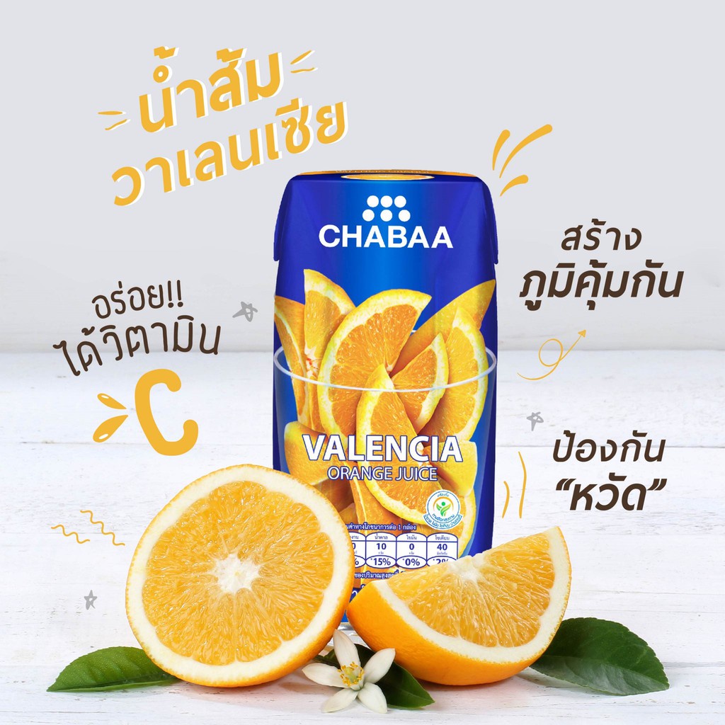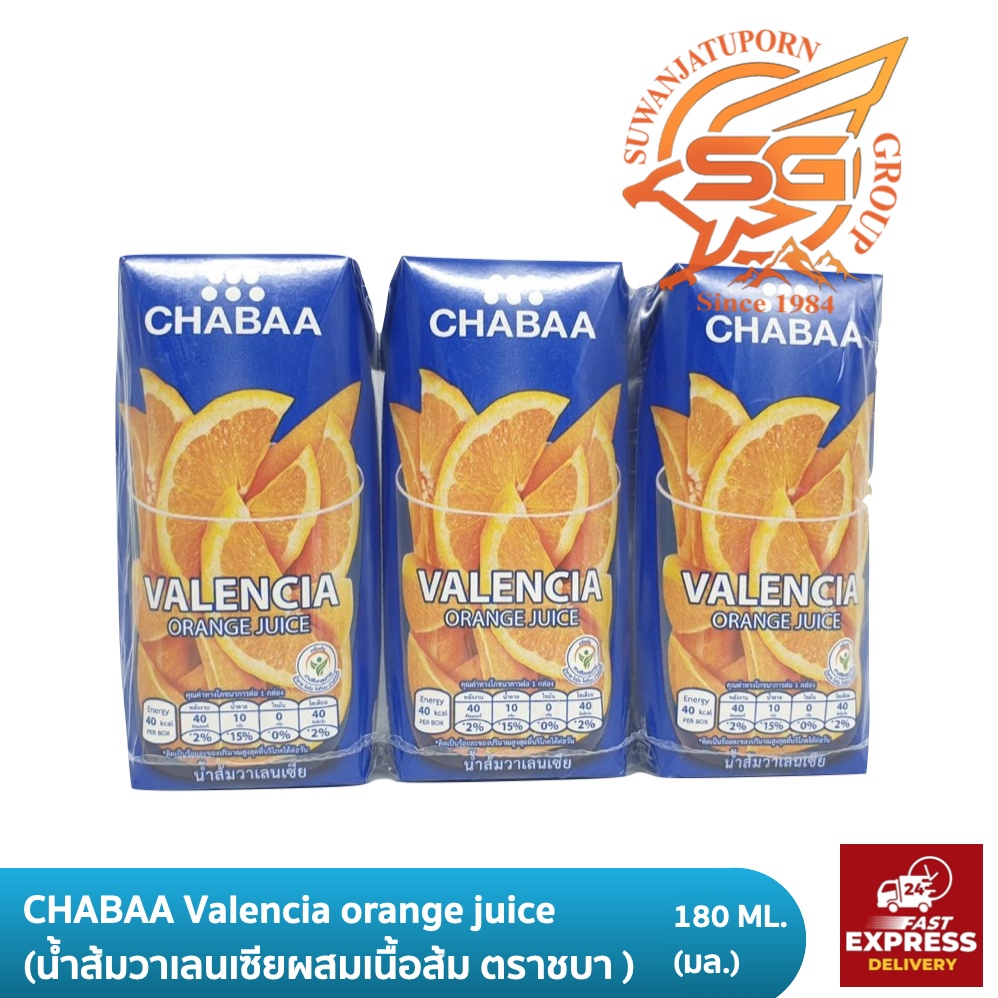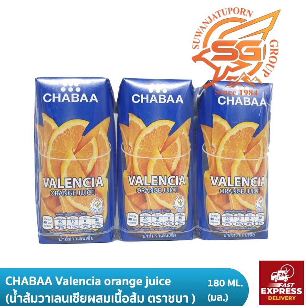 ชบา น้ำส้มวาเลนเซีย ผสมเนื้อส้ม 180มล. CHABAA ยกลัง (36กล่อง)
