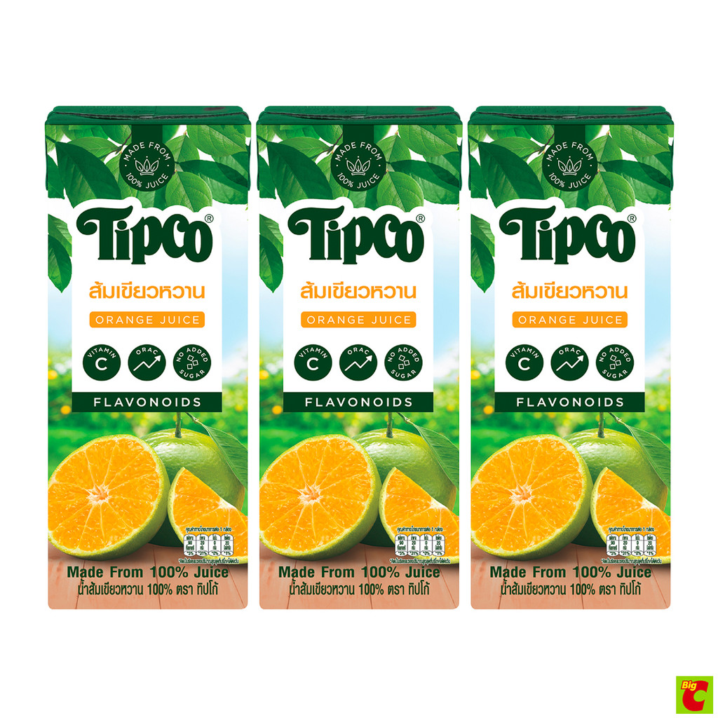 น้ำผลไม้ น้ำส้มสายน้ำผึ้ง ทิปโก้ 200 มล. (แพ็ค6กล่อง) Fruit Juice Orange Juice Tipco