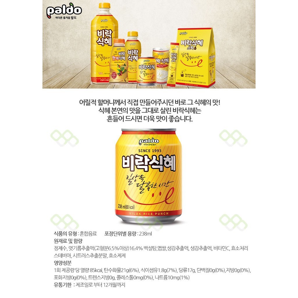 น้ำข้าวเกาหลี paldo shikhye sweet rice drink 238ml / shikhye cinnamon punch 238ml 팔도 비락식혜 비락수정과