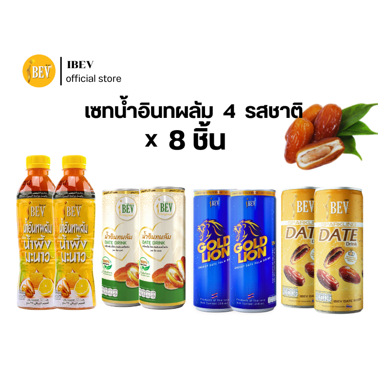 ชุดทดลอง น้ำอินทผลัม 8 ชิ้น 4 รสชาติ(รสดั้งเดิม รสโซดา รสน้ำผึ้งมะนาว เครื่องดื่มชูกำลังผสมอินทผลัม)