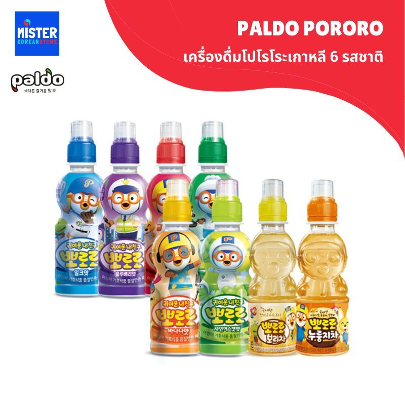 เครื่องดื่มโปโรโระเกาหลี 6 รสชาติ PALDO PORORO 팔도 뽀로로