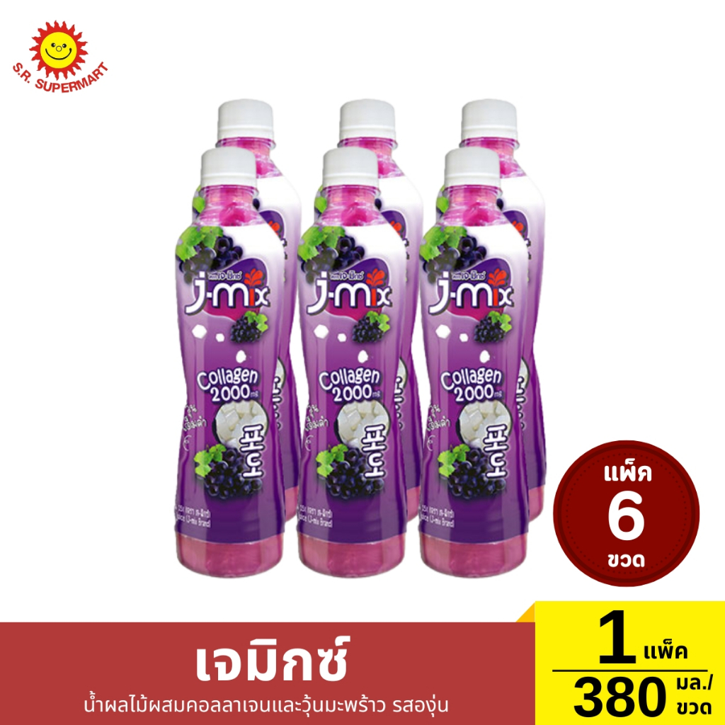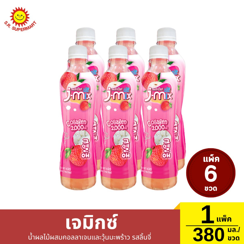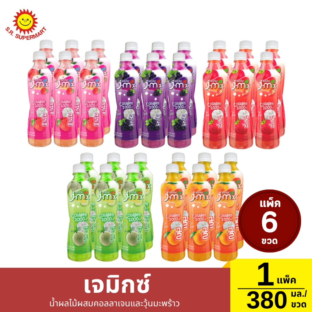 เจมิกซ์ น้ำผลไม้ผสมคอลลาเจนและวุ้นมะพร้าว 1 แพ็ค / ปริมาณ 380 กรัม (ขวด)