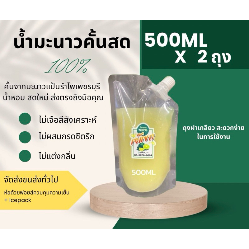 เจ๊แขก น้ำมะนาวคั้นสดแท้ 100% จากมะนาวแป้นรำไพ ขนาด 500ml x 2 ถุง แพคบรรจุใส่ถุงฟอยส์ควบคุมความเย็น+icepack