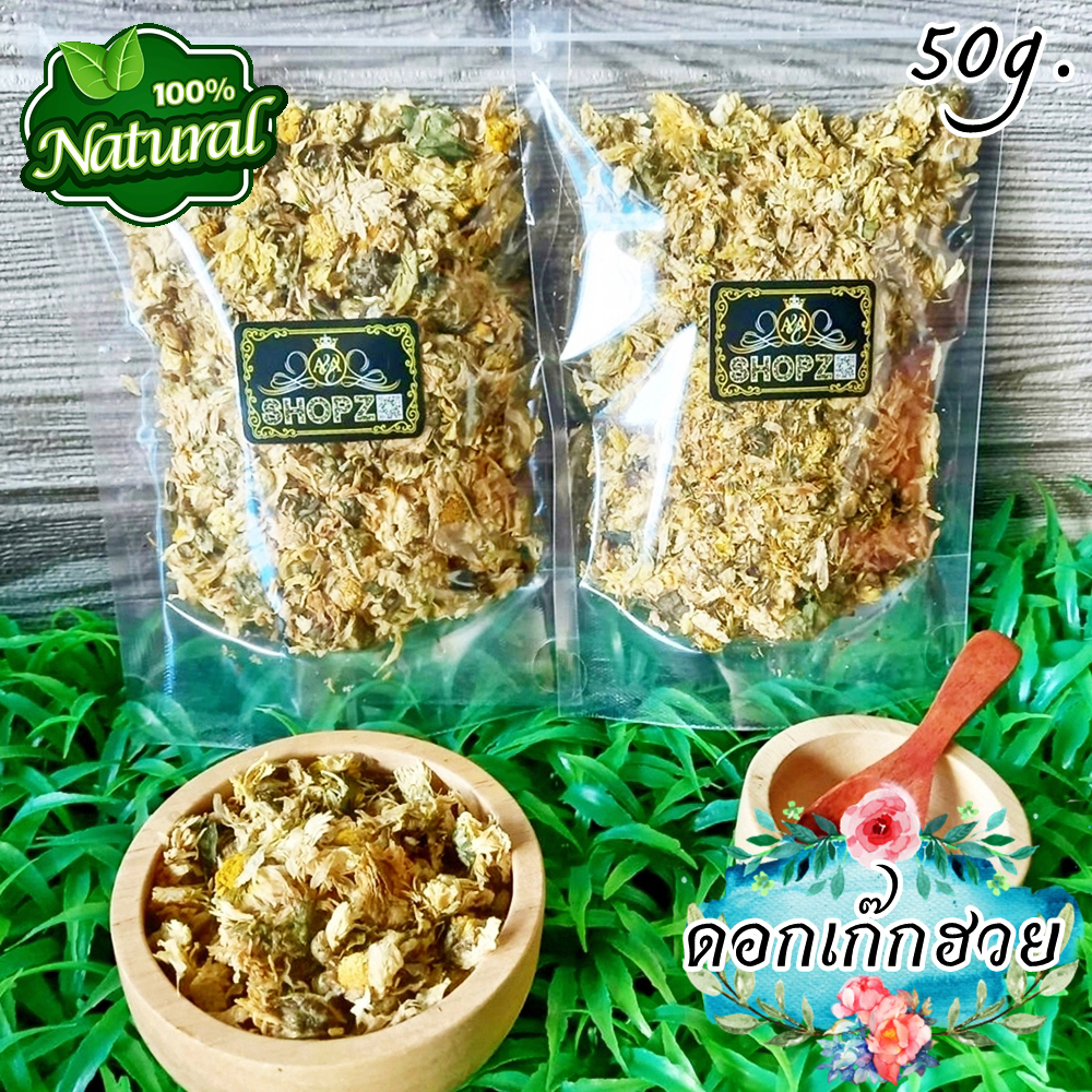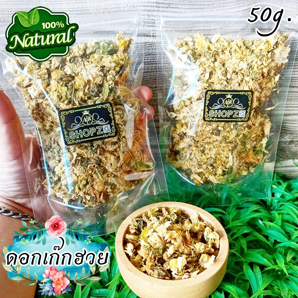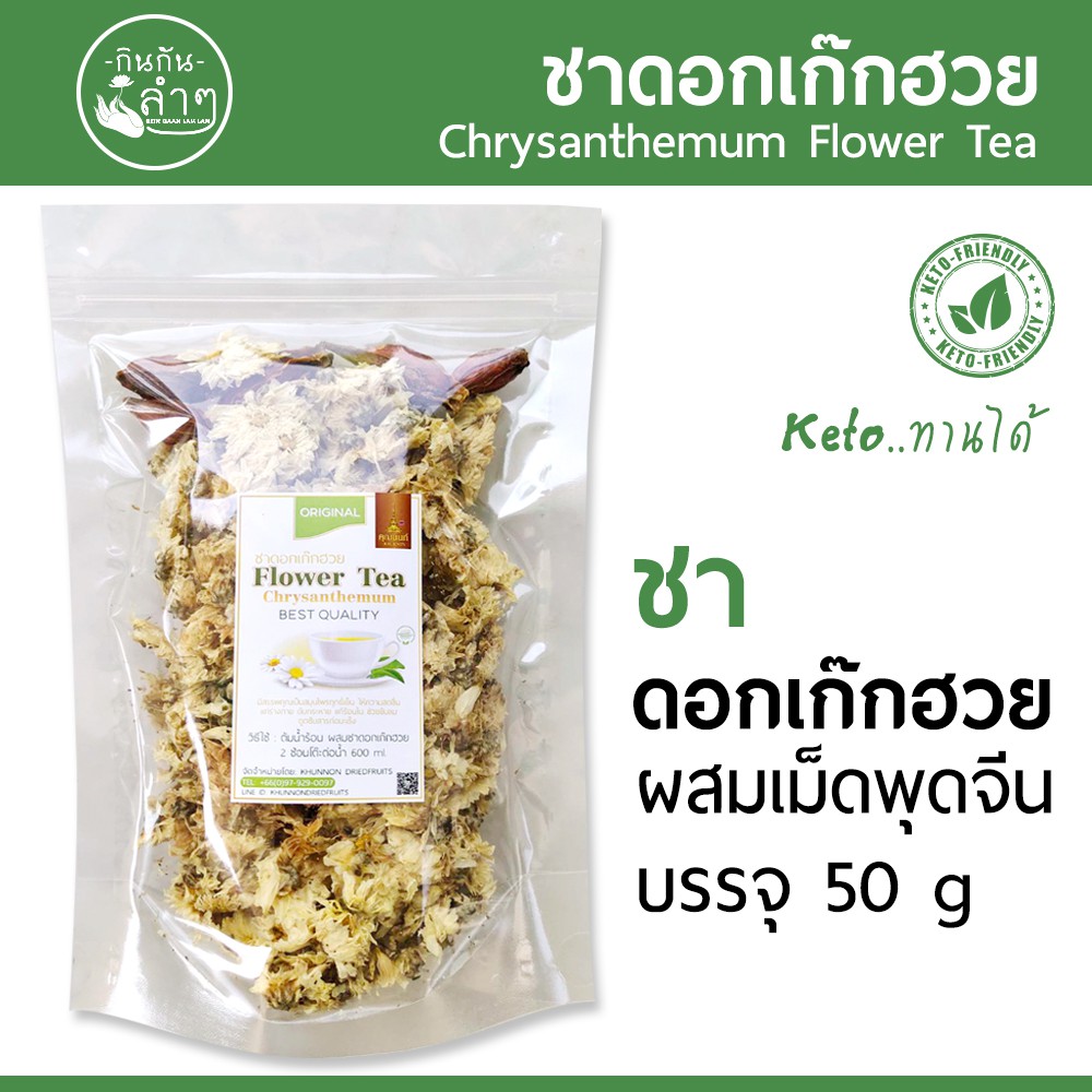 ?ชา ดอกเก๊กฮวย ออแกนิค ฟรี เม็ดพุดจีน ถุงซิปล๊อค 50 กรัม ชาดอกไม้ ชาสมุนไพร #Chrysanthemum Flower Tea