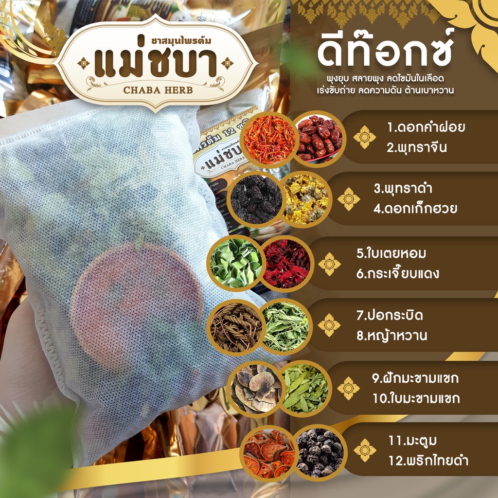 [ขายดีมาก ส่งฟรี!] แม่ชบาของแท้ ยืนหนึ่ง พุงยุบ ต้นตำรับ! สมุนไพรต้มคุมหิวอิ่มนาน 12 ชนิดแม่ชบา แพค 3 ห่อ