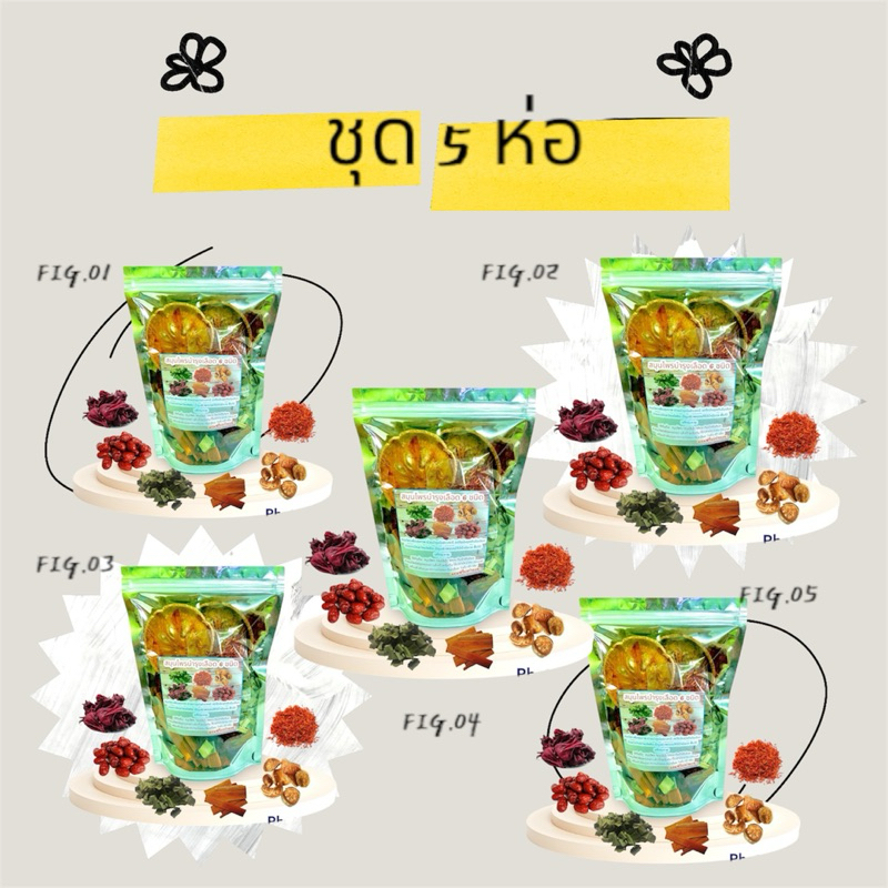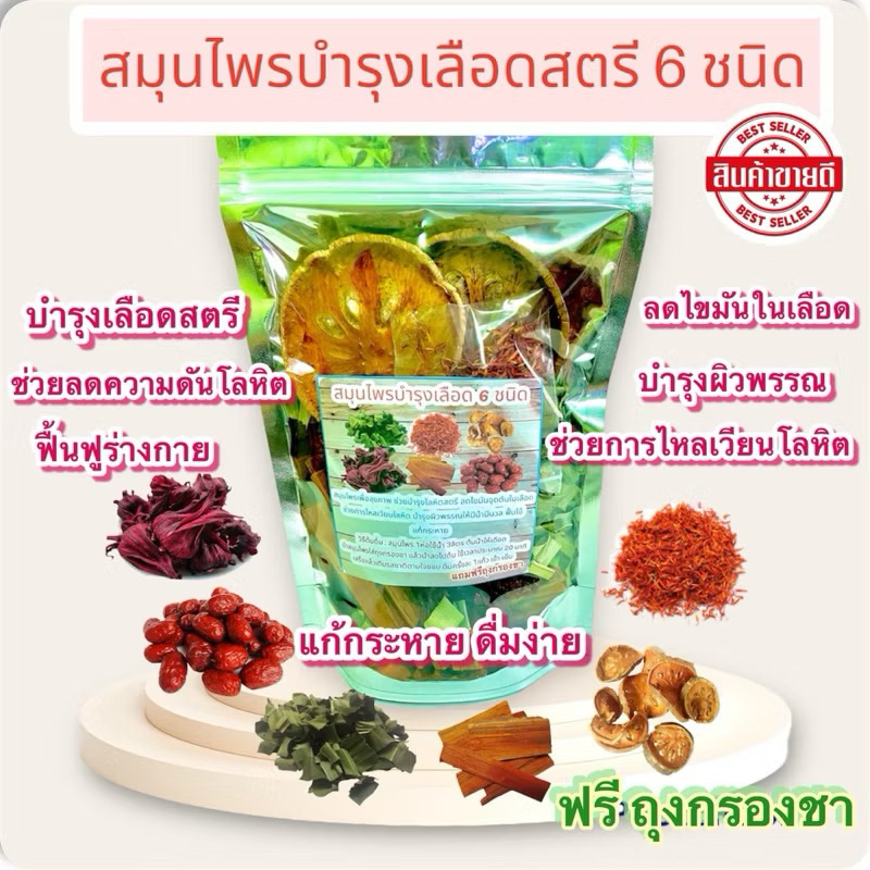 (ชุด 5ห่อ) สมุนไพรบำรุงเลือด 6 ชนิด บรรจุ 120 กรัม มีถุงกรองชา
