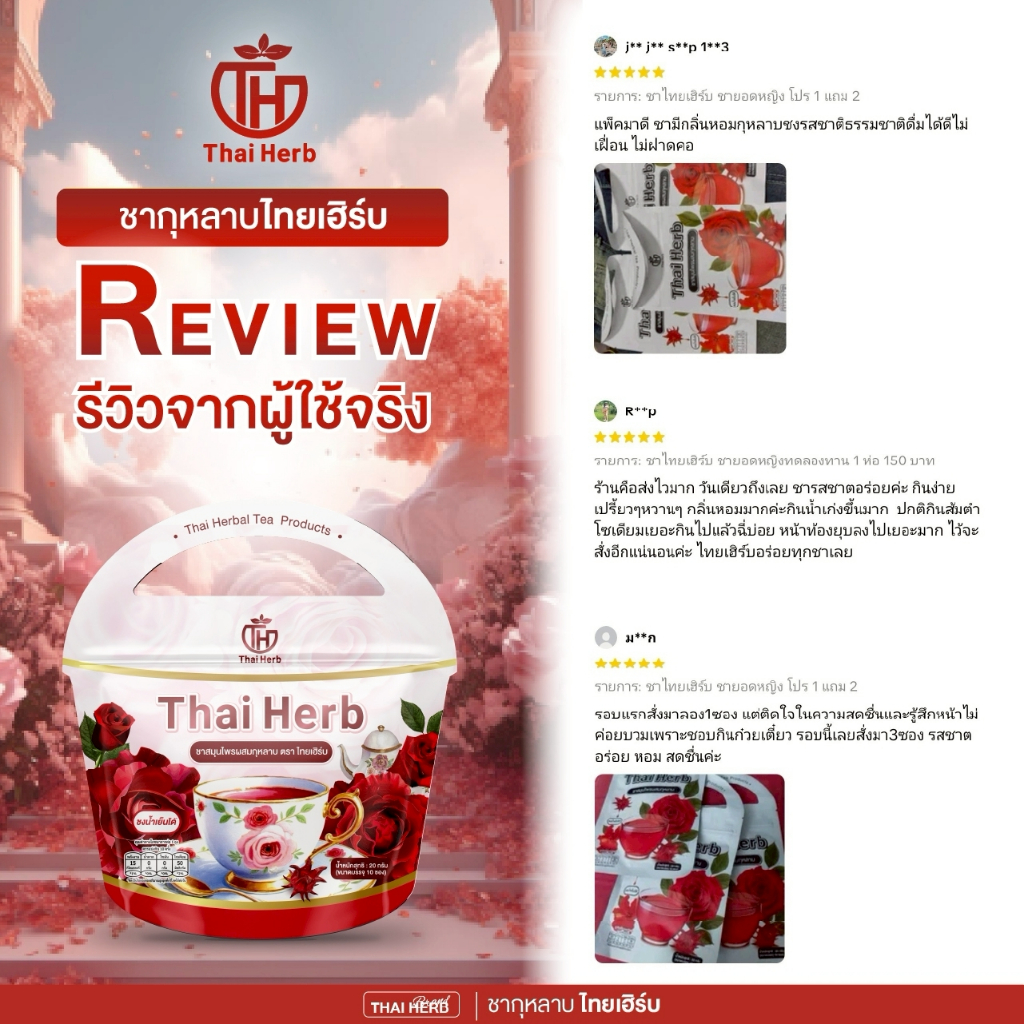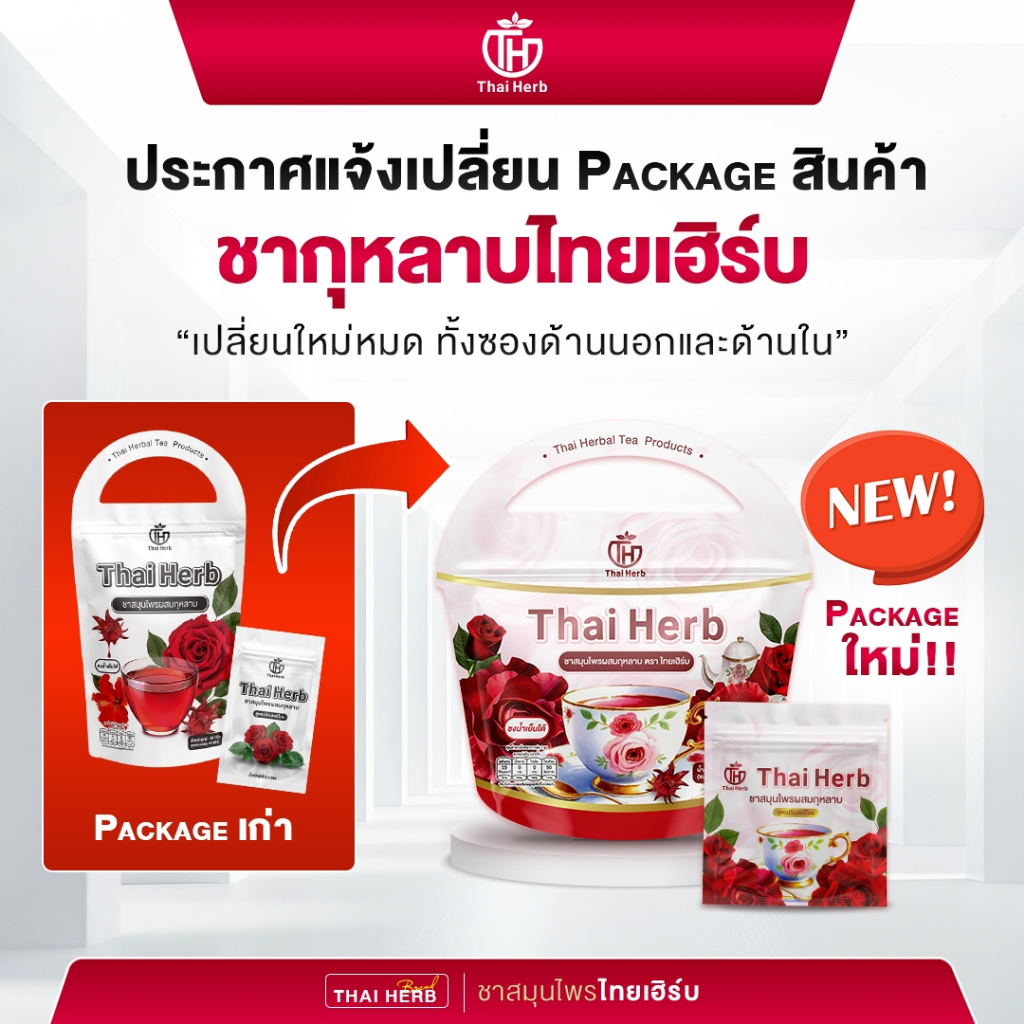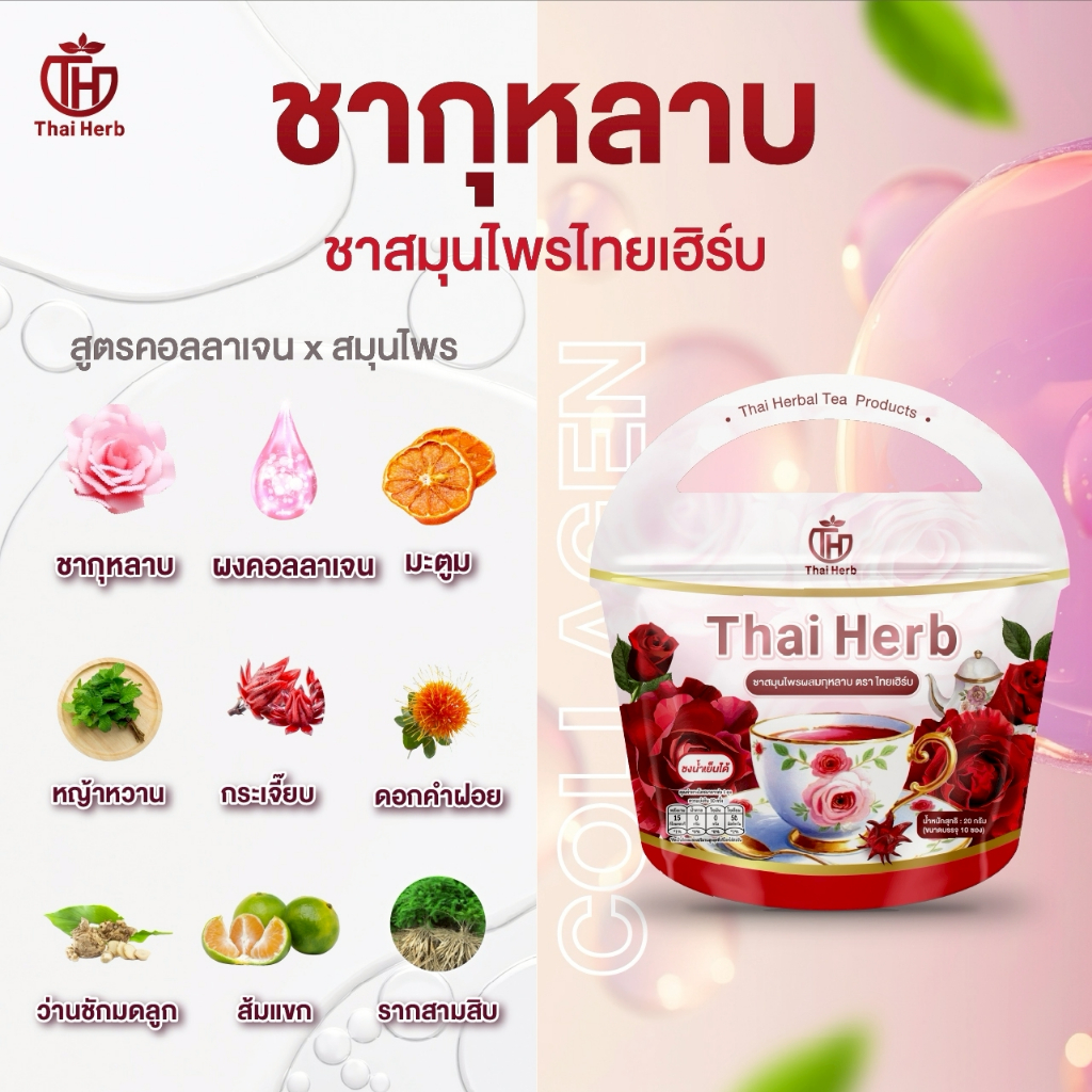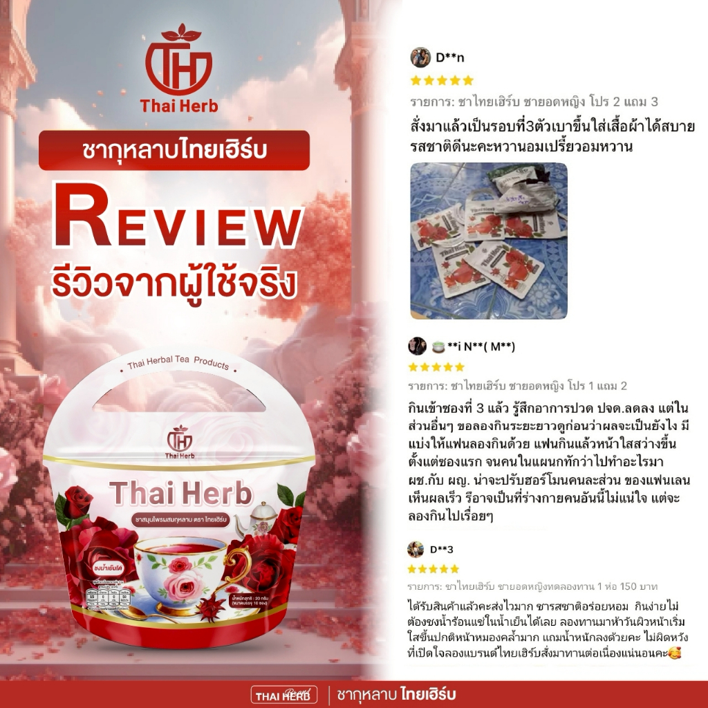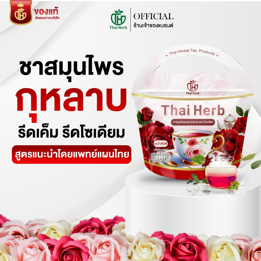 (?ร้านเจ้าของเเบรนด์) ชายอดหญิง ชากุหลาบ ชาไทยเฮิร์บThaiherb (3ห่อ 30ซอง) สูตรแพทย์แผนไทย ขับโซเดียม