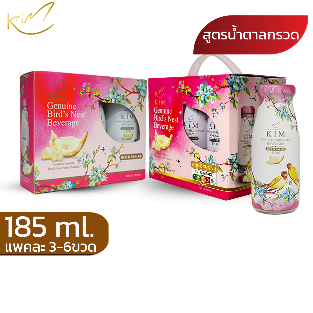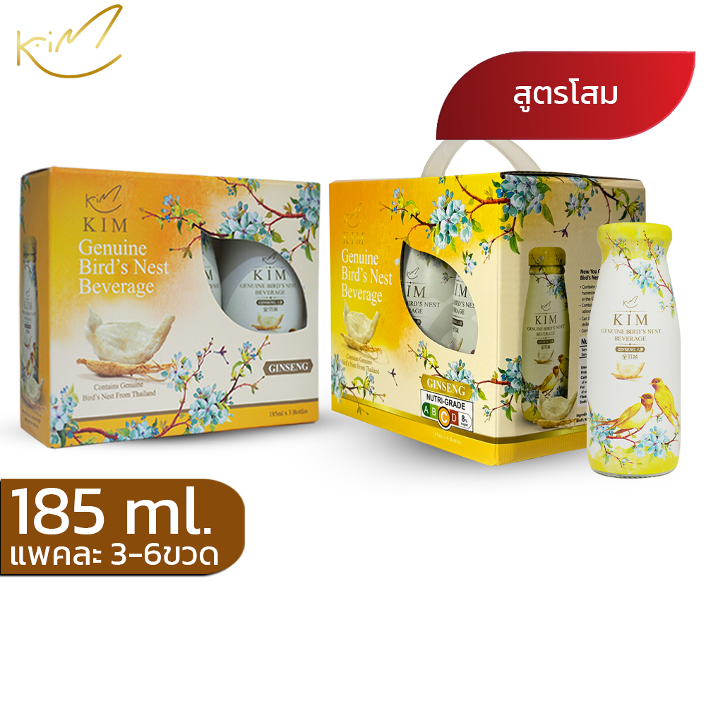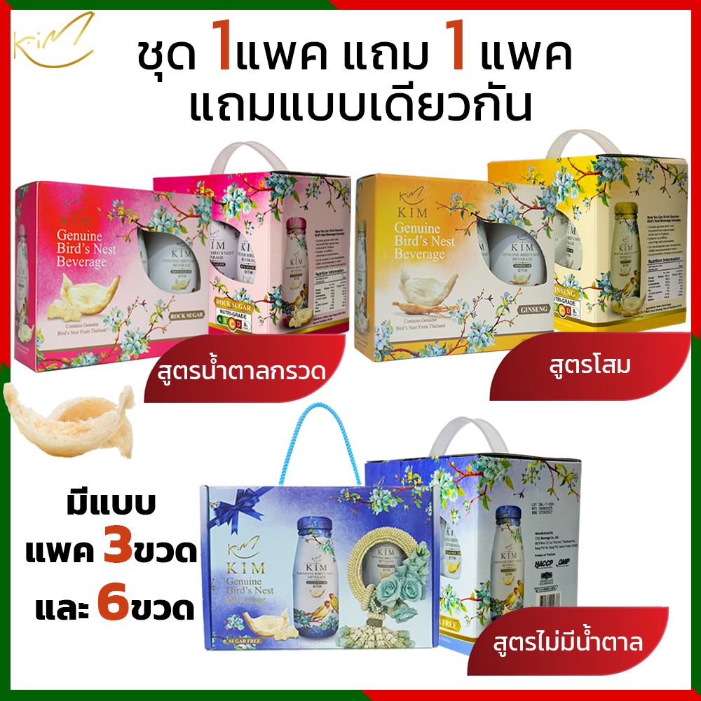 (ชุด1แพคแถม1แพค)รังนกกิม ขนาด185ml.แบบแพค3ขวดและแพค6ขวด มีสูตรน้ำตาลกรวด และโสม KIM BIRD’S NEST