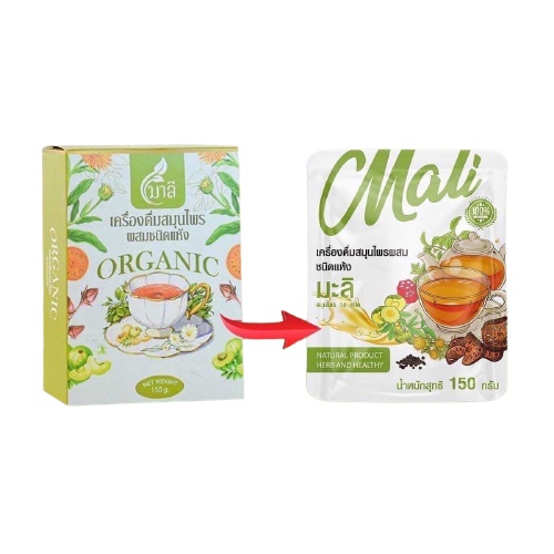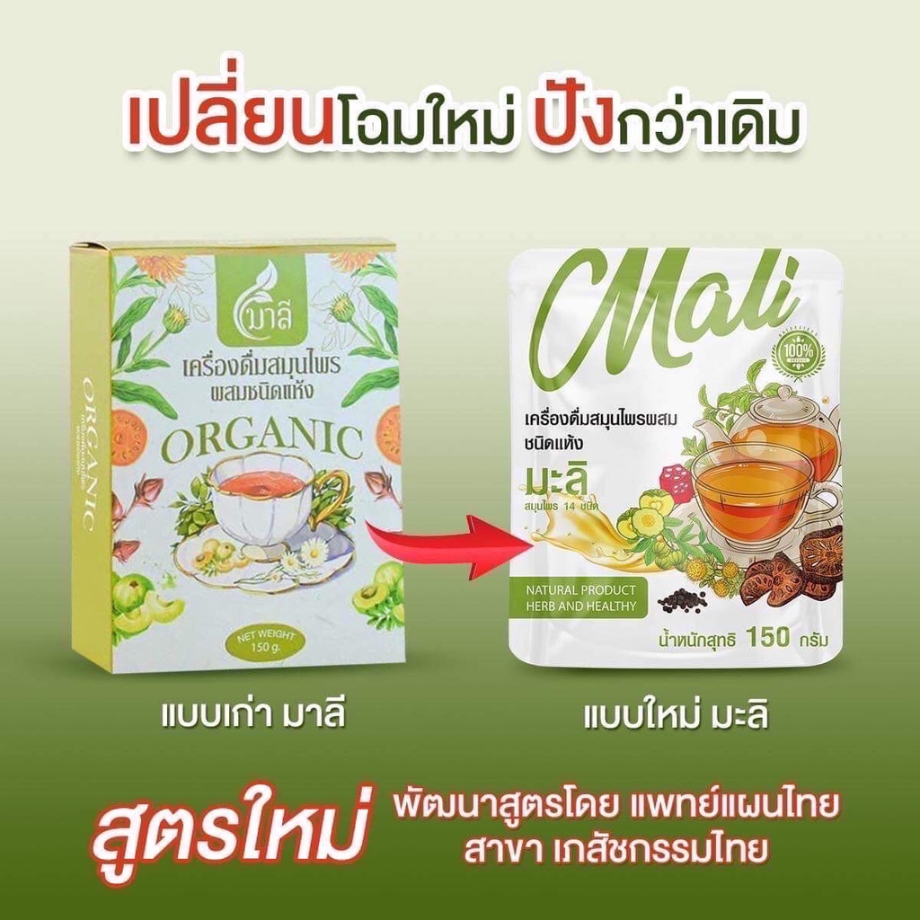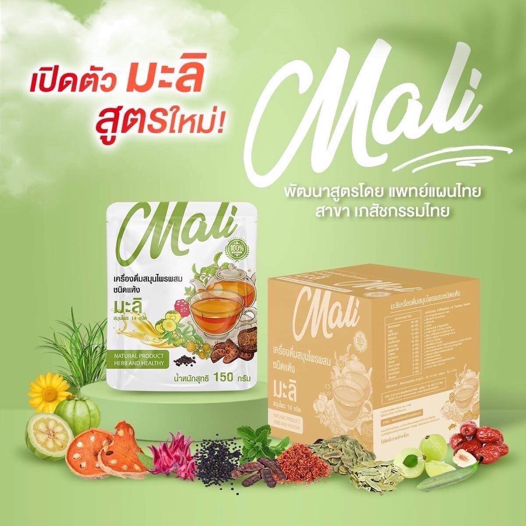 สมุนไพรมาลี ชาสุขภาพช่วยขับถ่าย (แพคเกจใหม่บรรจุห่อ 150 กรัมแบบต้ม)/ชาชง ชามาลัย แบบชง