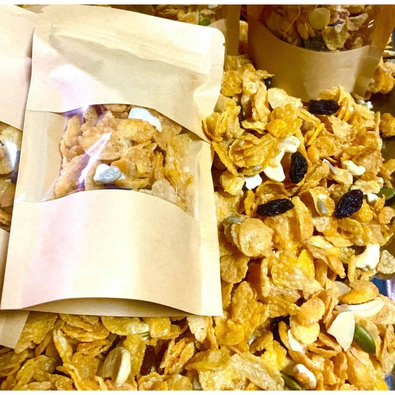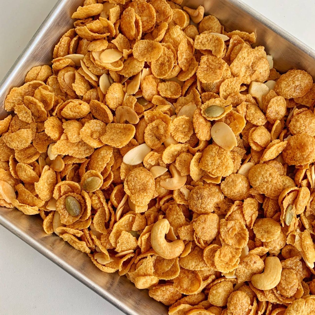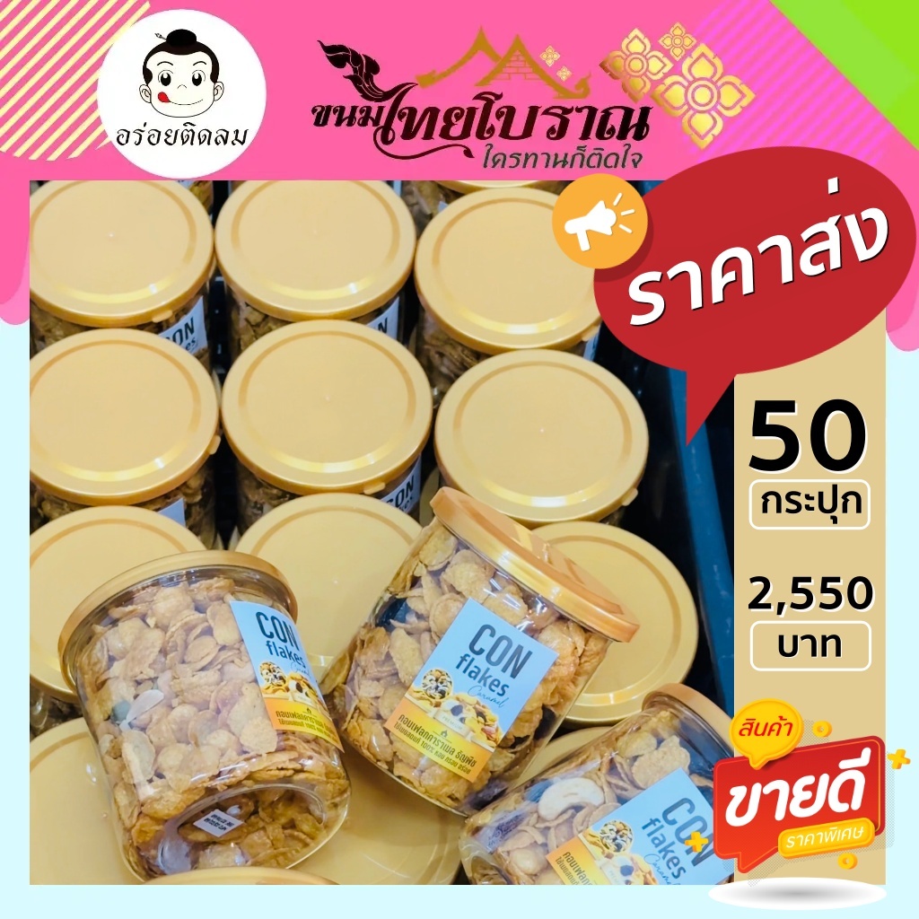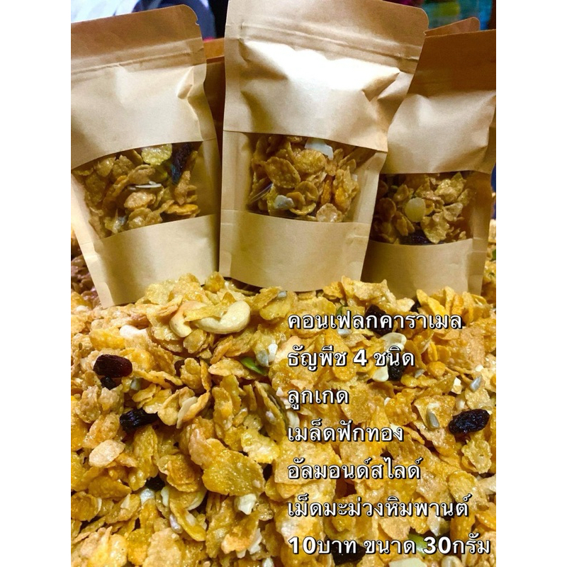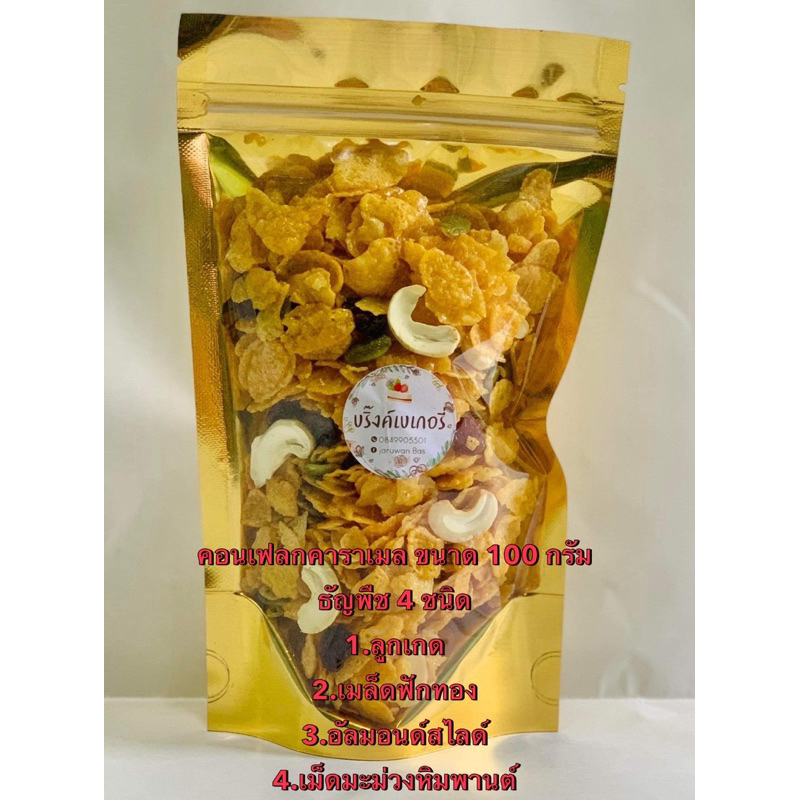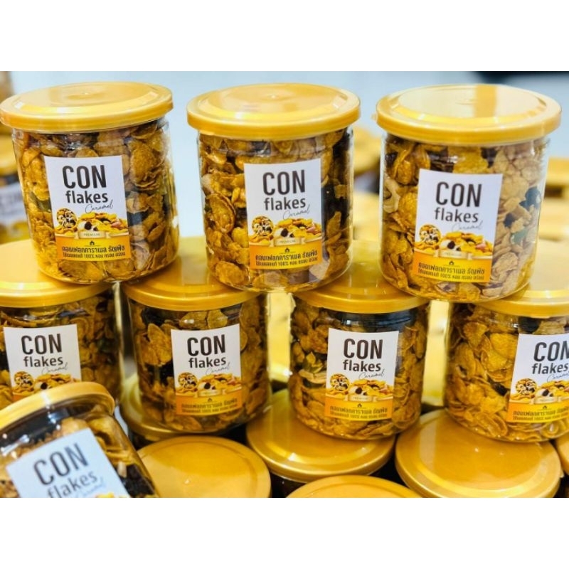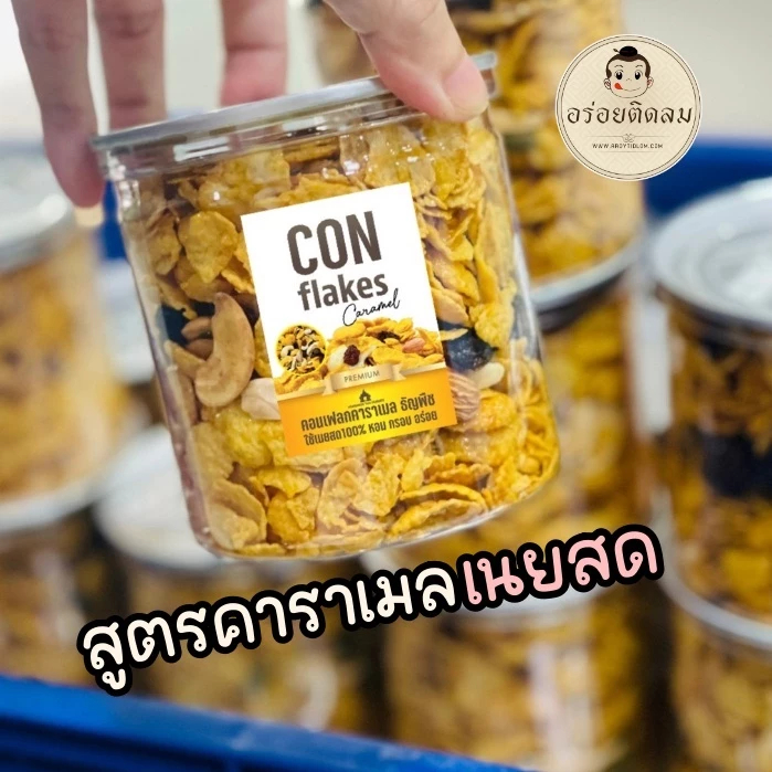 คอนเฟรคคาราเมลแบบมีธัญพืช500กรัม /ไม่มีธัญพืช200กรัม กรอบ หวานละมุน หอมคาราเมล – ขนมคุณละออ