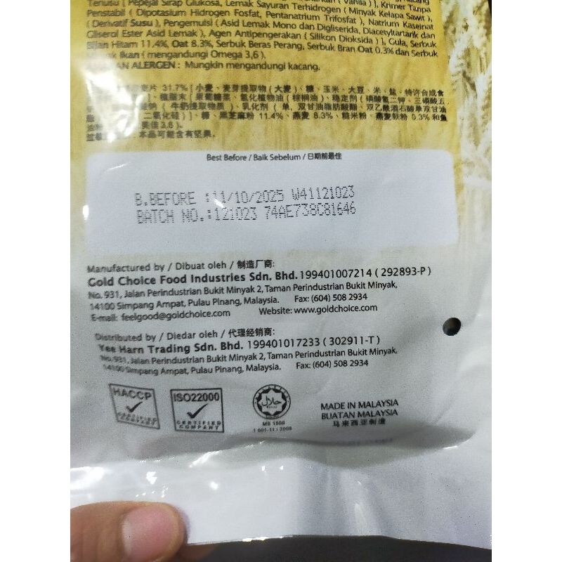 ขนมข้าวโอ๊ต1ห่อ ขนาด400กรัม มีรสนม ช็อกโกแลตและรวมรสชาติ