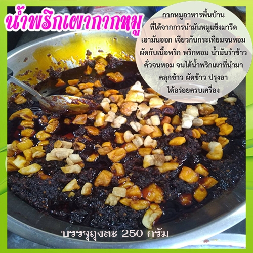 เมนูแนะนำ ทานง่ายรสชาติดี 250กรัม?น้ำพริกเผาผัดกากหมู จำนวน1ถุง/ปริมาณ250กรัม?ความอร่อยในตำนาน