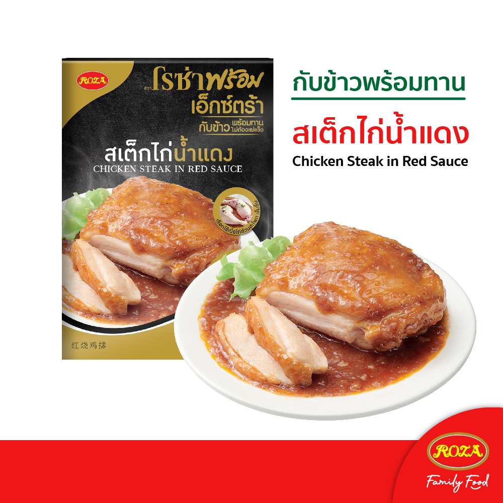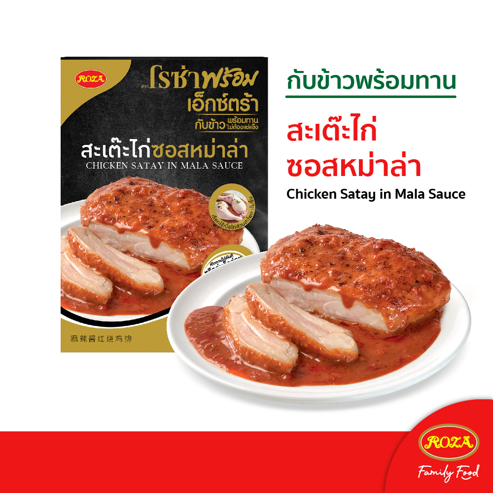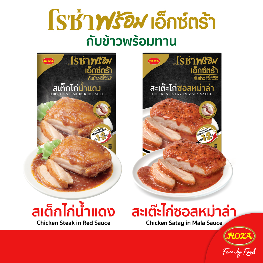 โรซ่าพร้อม เอ็กซ์ตร้า อาหารพร้อมทาน เมนูสเต็กไก่น้ำแดง และ สะเต๊ะไก่ซอสหม่าล่า ขนาด 180 กรัม