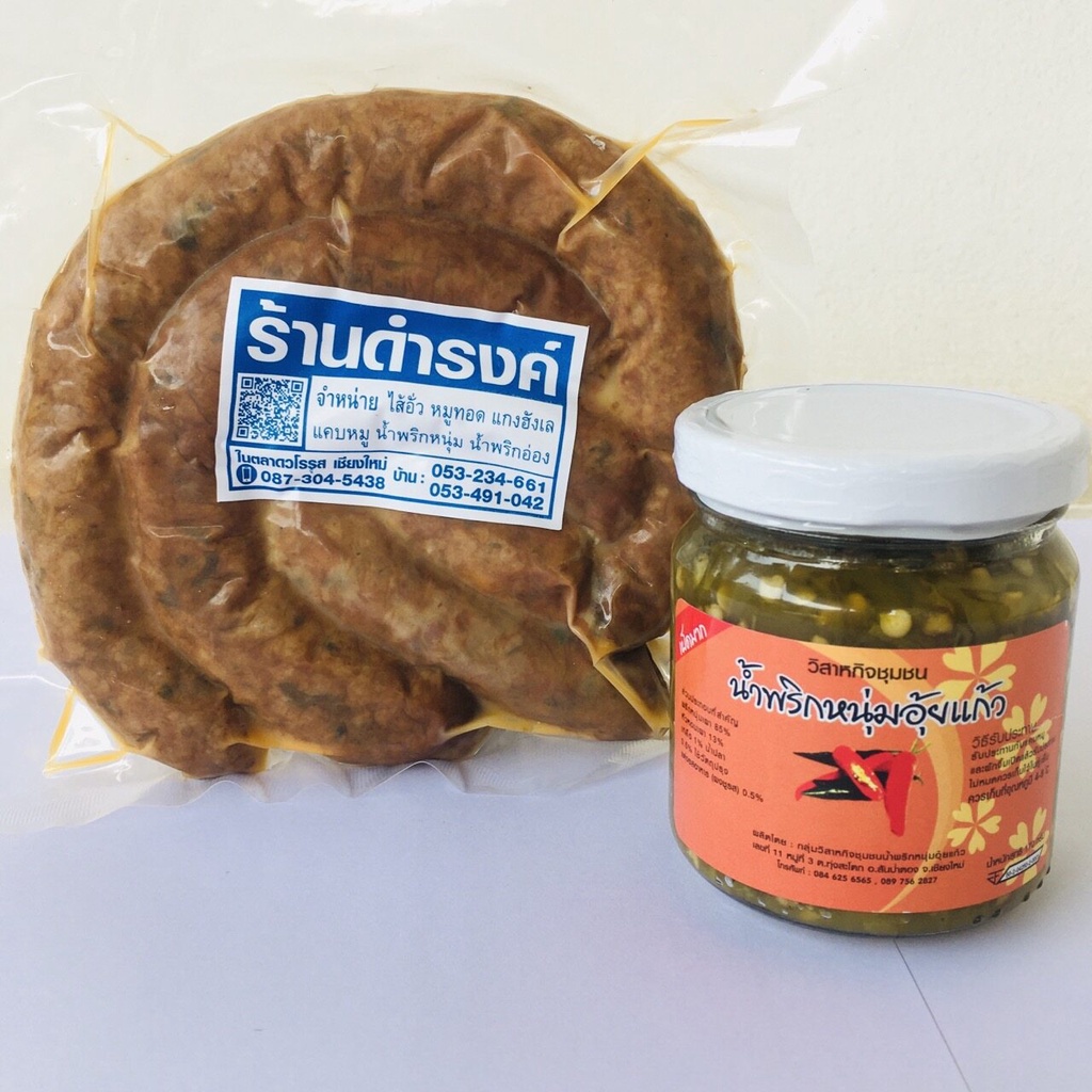 ไส้อั่ว ไส้อั่วดำรงค์(ขนาด300g) + น้ำพริกหนุ่ม อุ้ยแก้ว เผ็ดมาก เซ็ทเล็ก