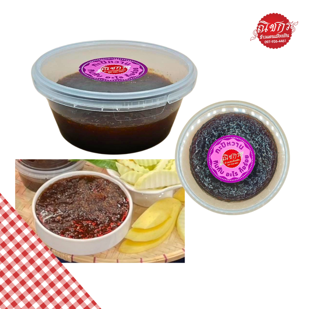 กะปิหวาน 500 กรัม ตราณิชกรเป็นเครื่องจิ้มกับผลไม้เช่นมะม่วงแอปเปิ้ลหรือผลไม้ตามฤดูกาล