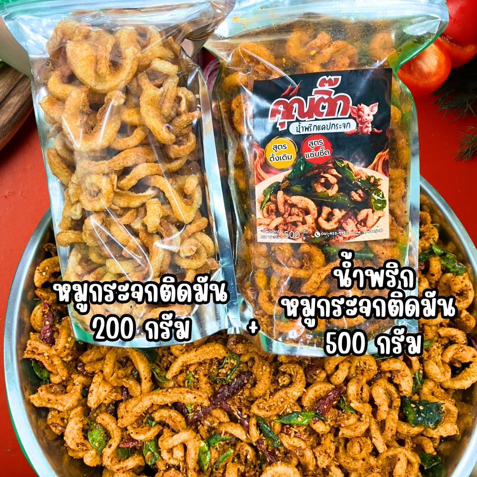 คุณติ๊ก น้ำพริกหมูกระจก 500 กรัม + หมูกระจกติดมันออริจินอล 200 กรัม แซ่บถึงใจ กรอบเคี้ยวเพลินไม่เหม็นหืน อร่อยมาก