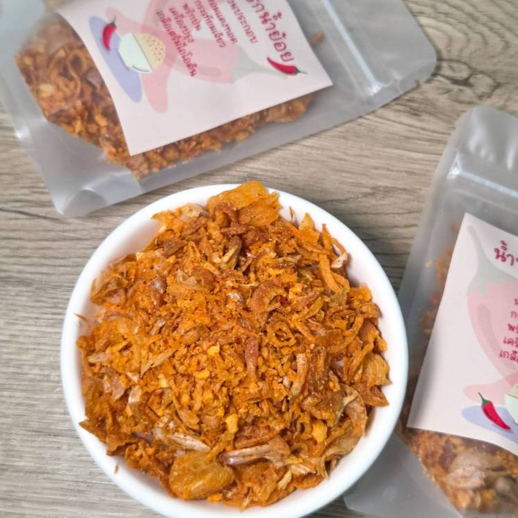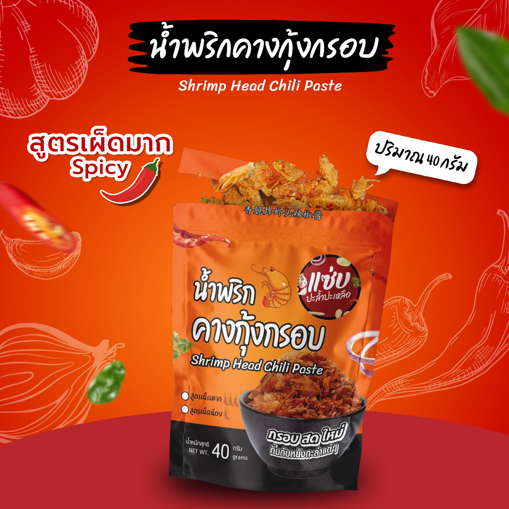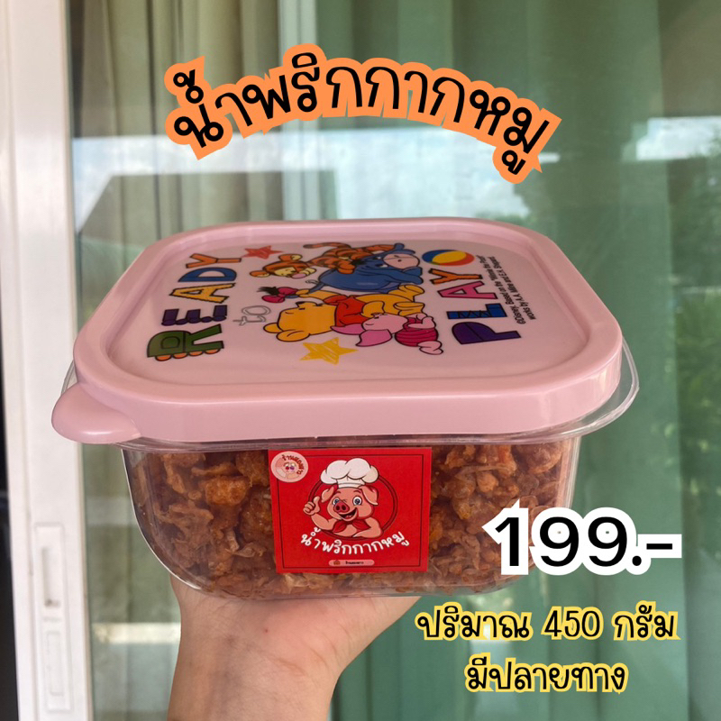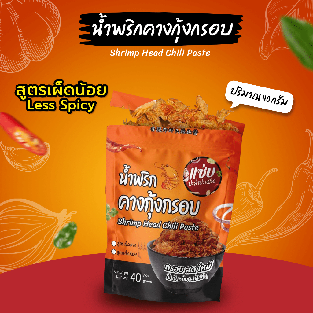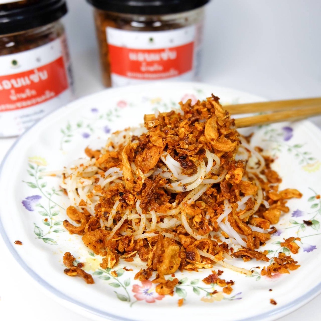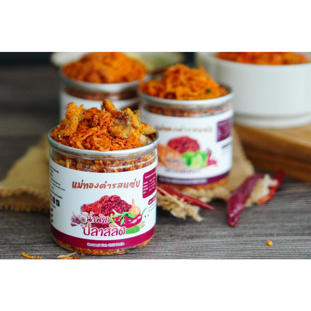 น้ำพริกน้ำย้อย น้ำพริกนรก น้ำพริกกากหมู สูตรเด็ด สูตรโบราณ แม่แอ๊ว มีขนาด 100 กรัม