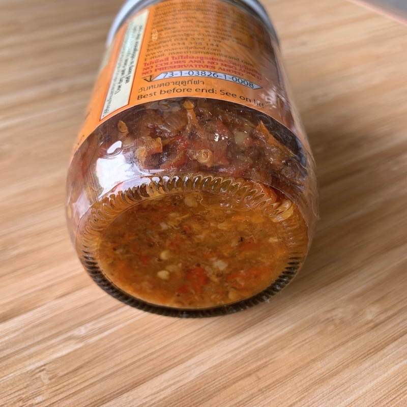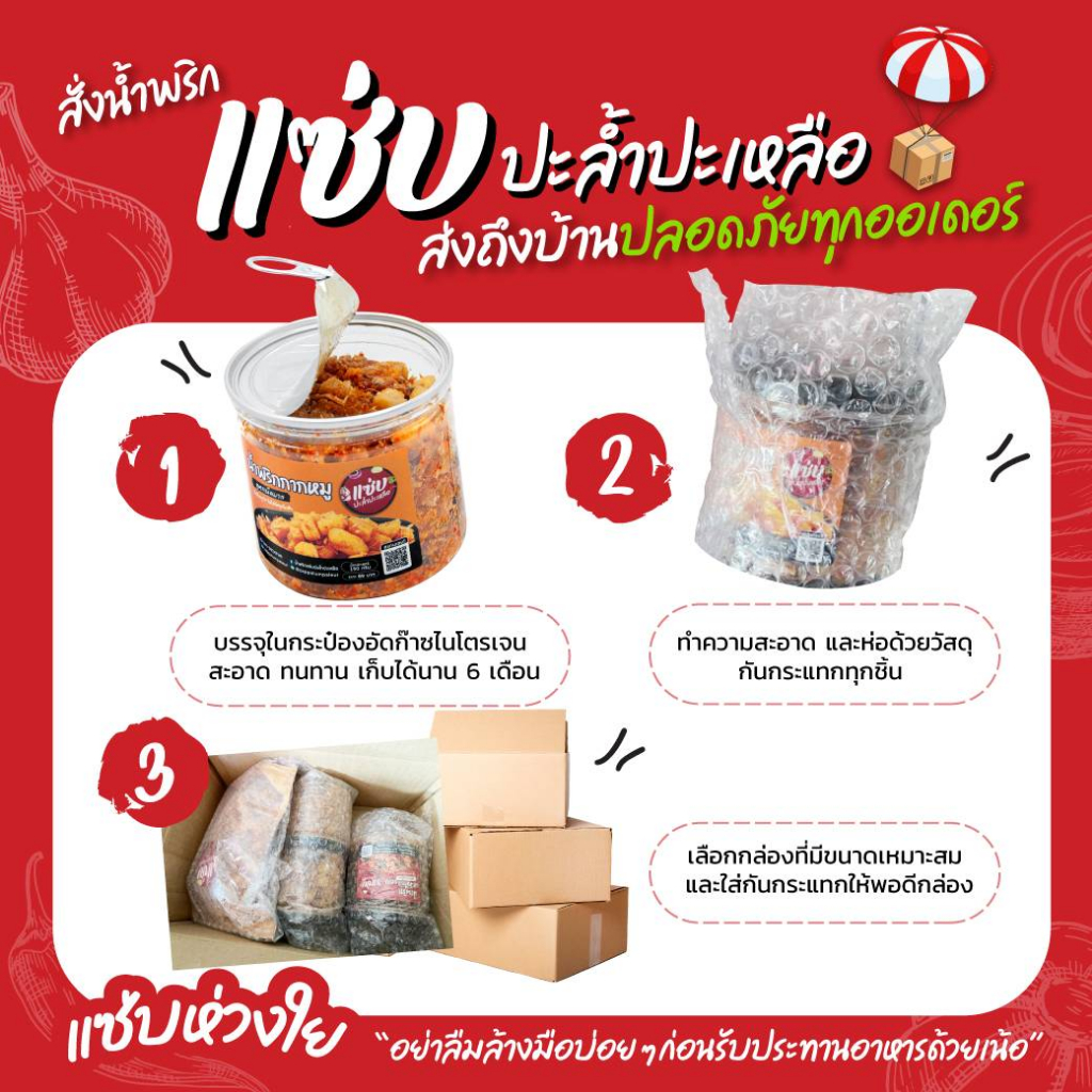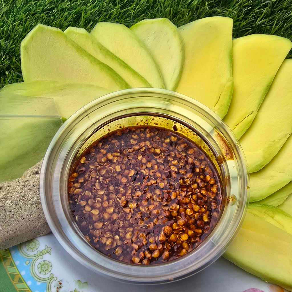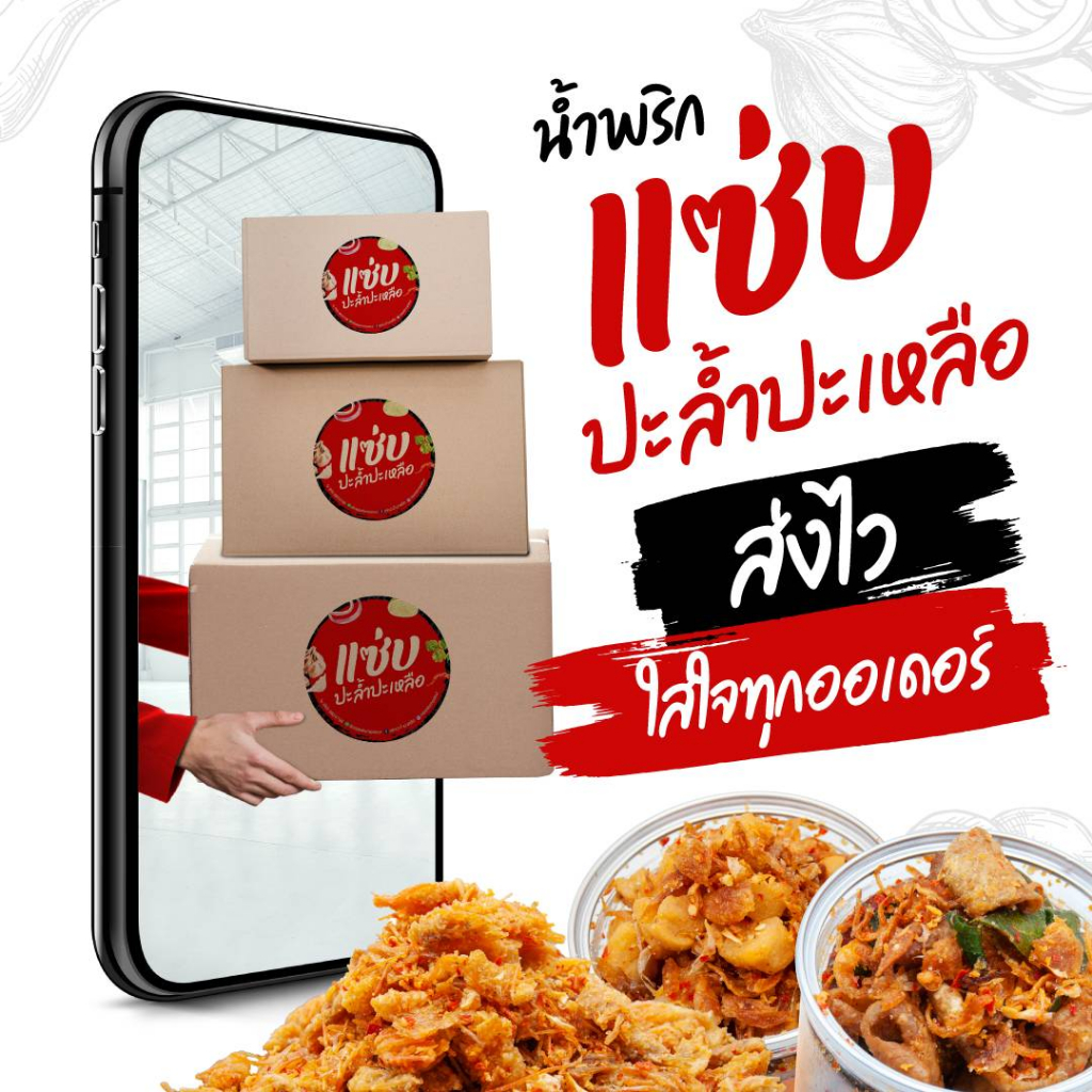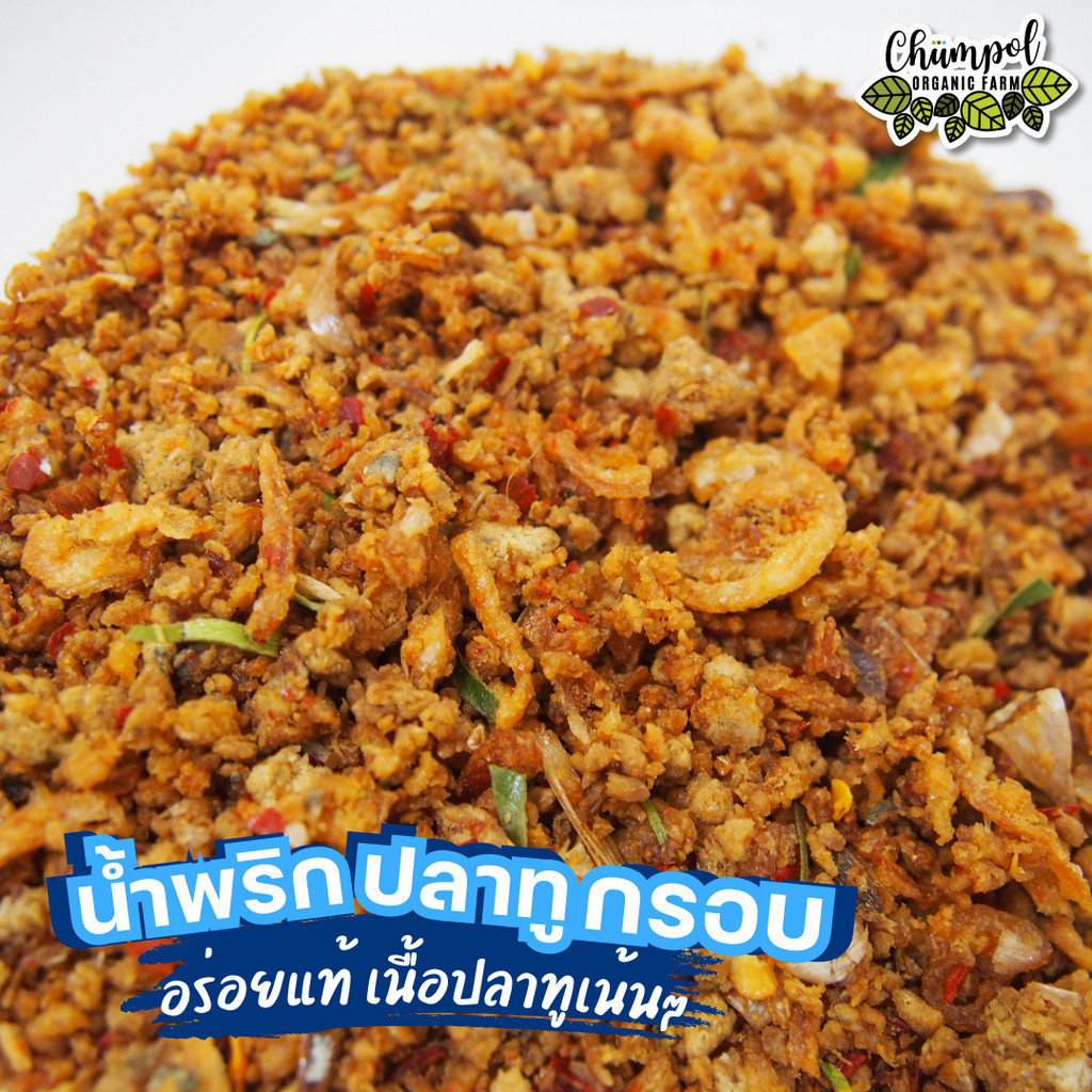น้ำพริกน้ำย้อย น้ำพริกนรก น้ำพริกกากหมู สูตรเด็ด สูตรโบราณ แม่แอ๊ว มีขนาด 100 กรัม