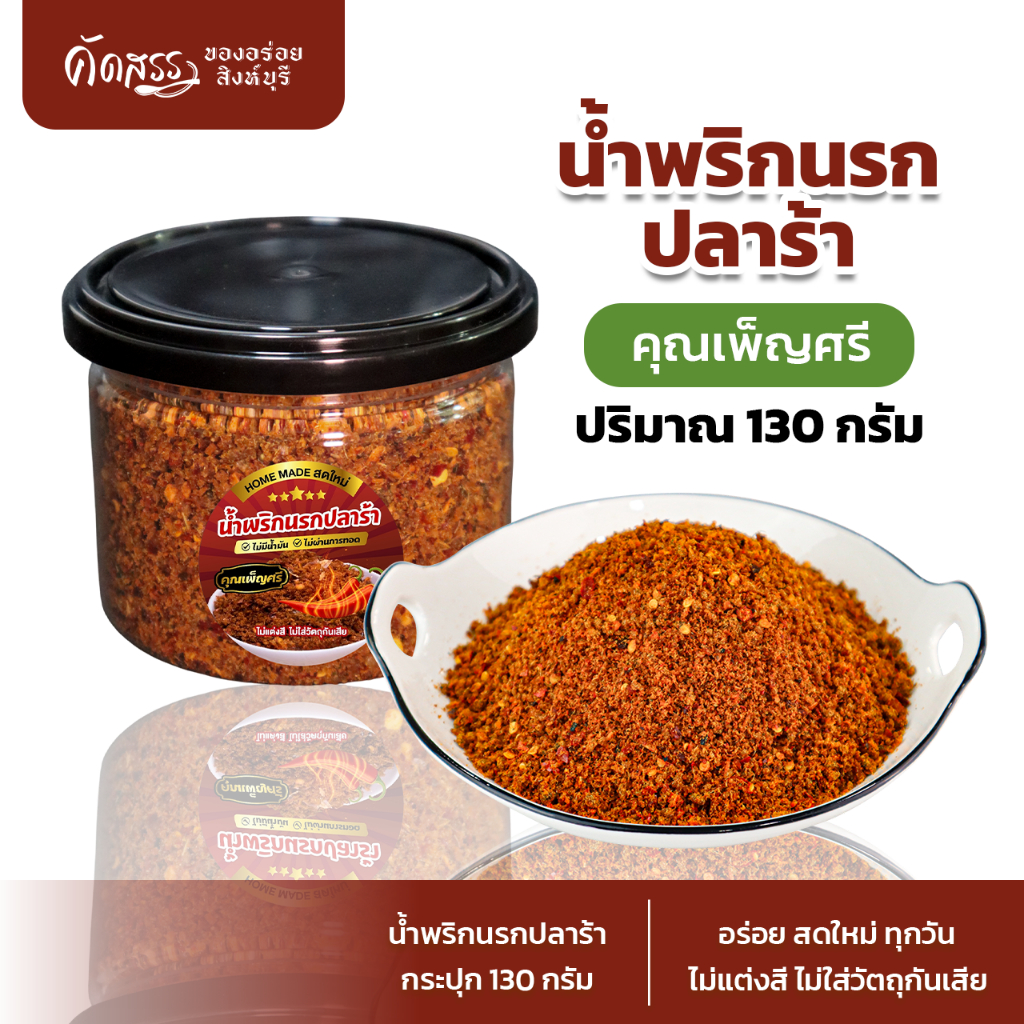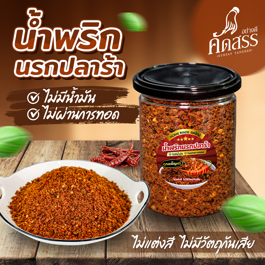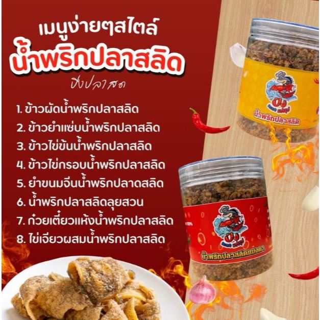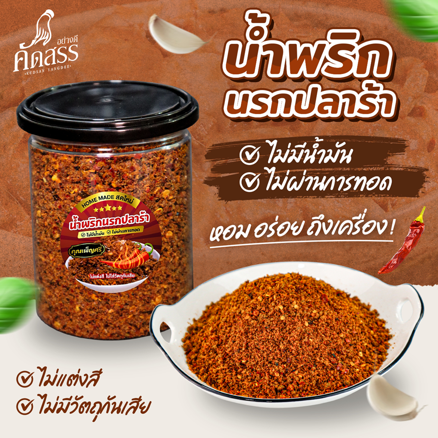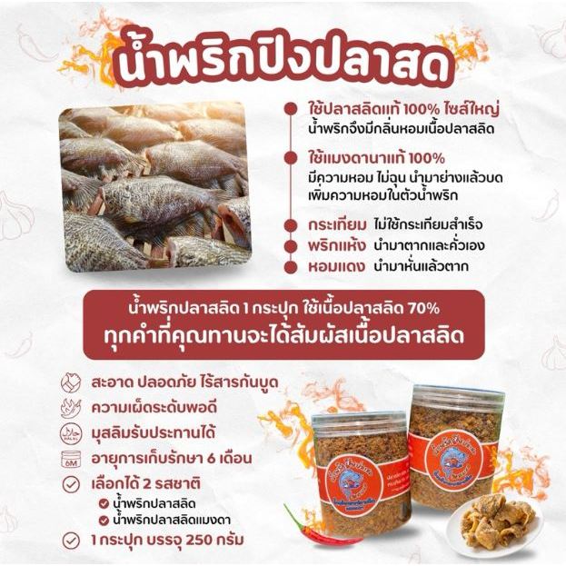 น้ำพริกนรกปลาสลิด กระปุกละ250กรัม เผ็ดกลาง เนื้อปลาล้วน ไม่หวาน ไม่เค็ม หอมเนื้อปลา