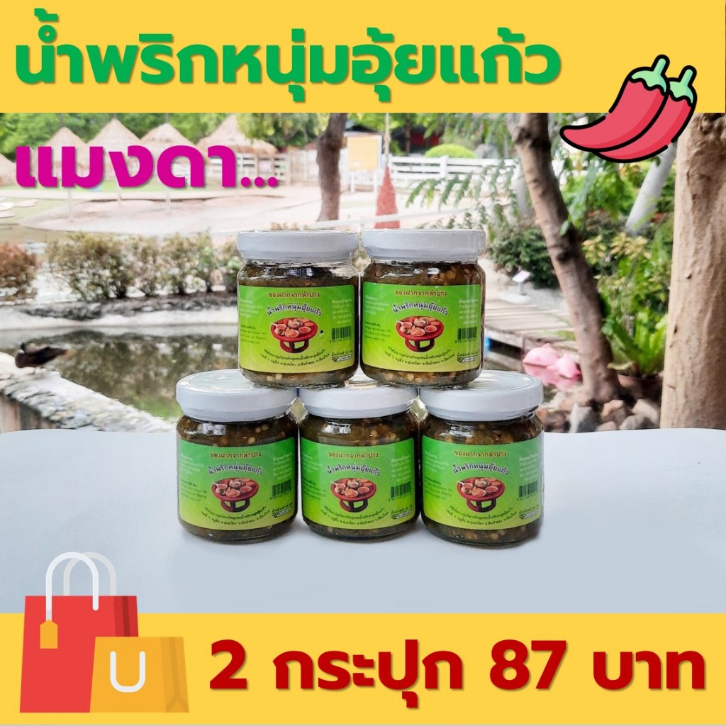 น้ำพริกหนุ่มอุ้ยแก้ว ของฝากจากลำปาง ราคาพิเศษ เผ็ดกลาง/เผ็ดมาก/ผสมแมงดา 160 กรัม/กระปุก [2 กระปุก 87 บาท]