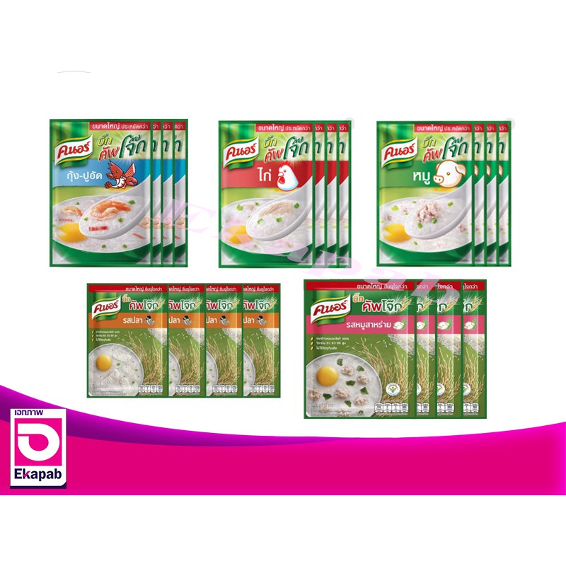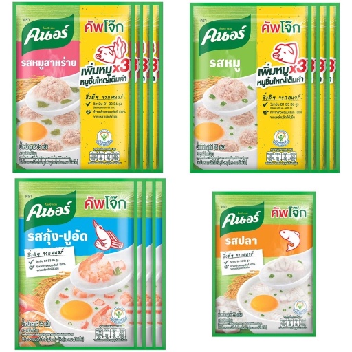 (แพ็ค 12 ซอง) คนอร์ คัพโจ๊ก โจ๊กข้าวหอมกึ่งสำเร็จรูป ชนิดซอง มี 4 รสชาติ 32 กรัม