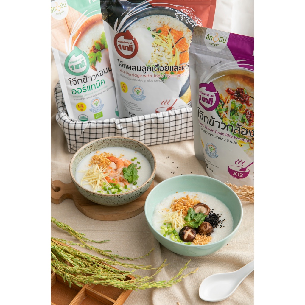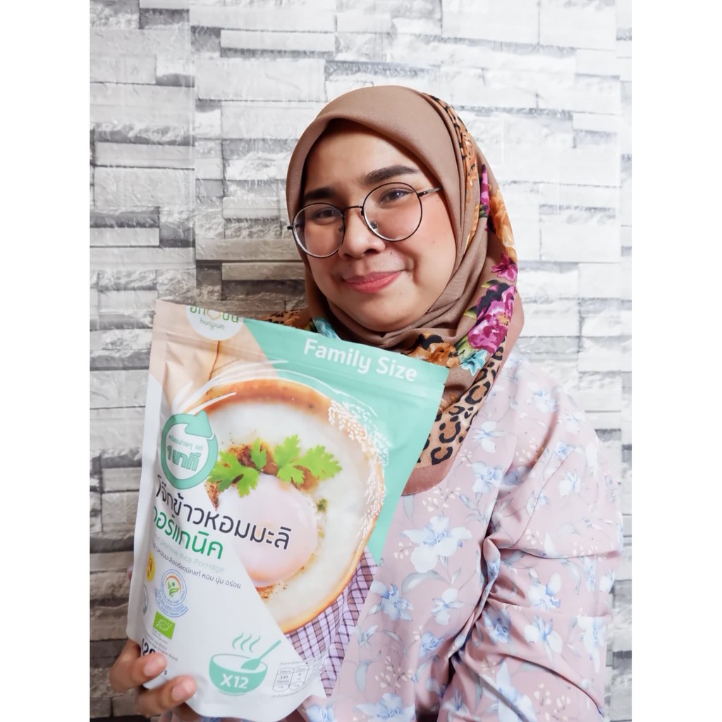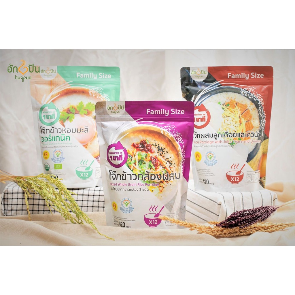 Family Size โจ๊กข้าวหอมมะลิ ออร์แกนิค กึ่งสำเร็จรูป ไม่ใส่ผงชูรส ไม่มีโซเดียม บรรจุ 420 ก. ฮักปัน