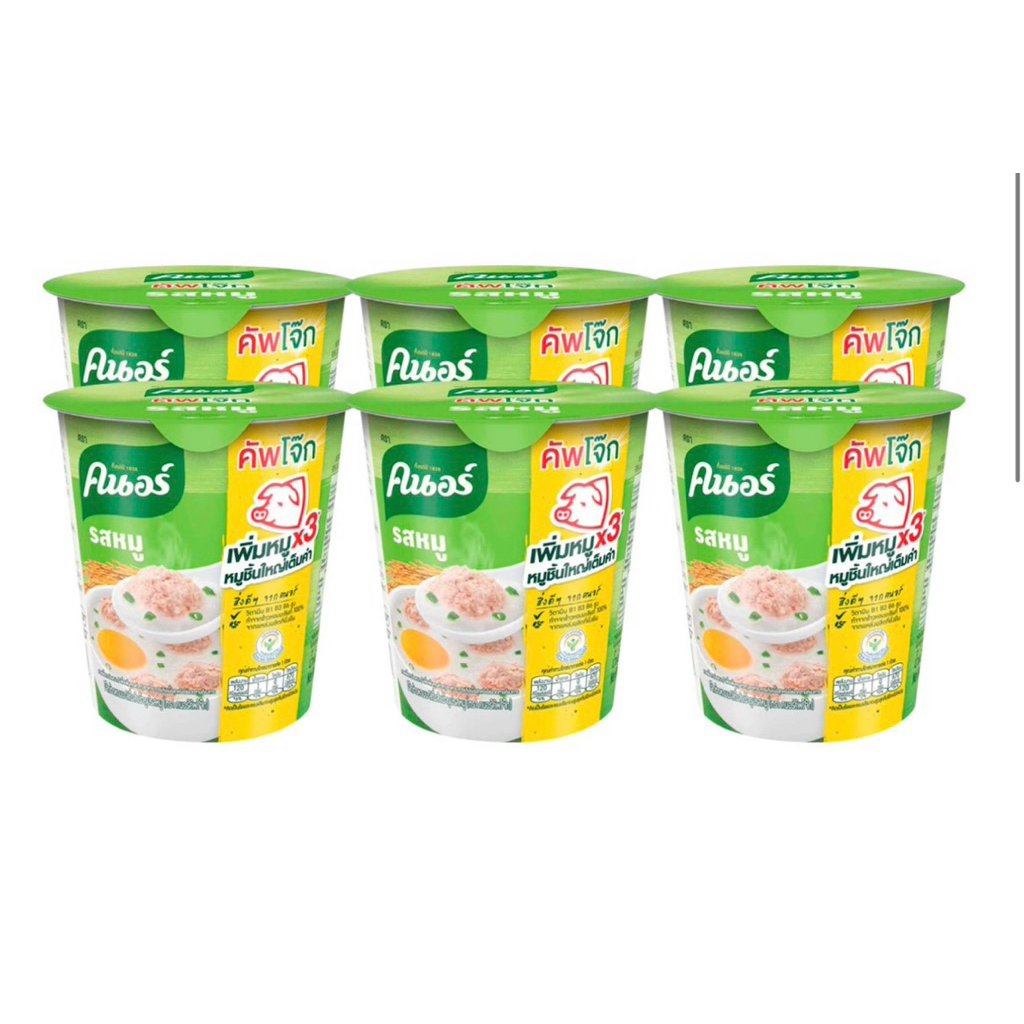 Knorr คนอร์ คัพโจ๊ก โจ๊กคัพ โจ๊ก โจ๊กถ้วย โจ๊ก กึ่งสำเร็จรูป โจ๊กกึ่งสำเร็จรูป รสหมู 32 ก. x 6