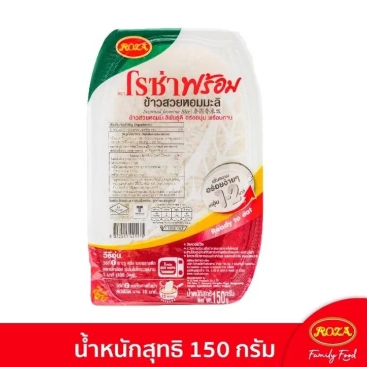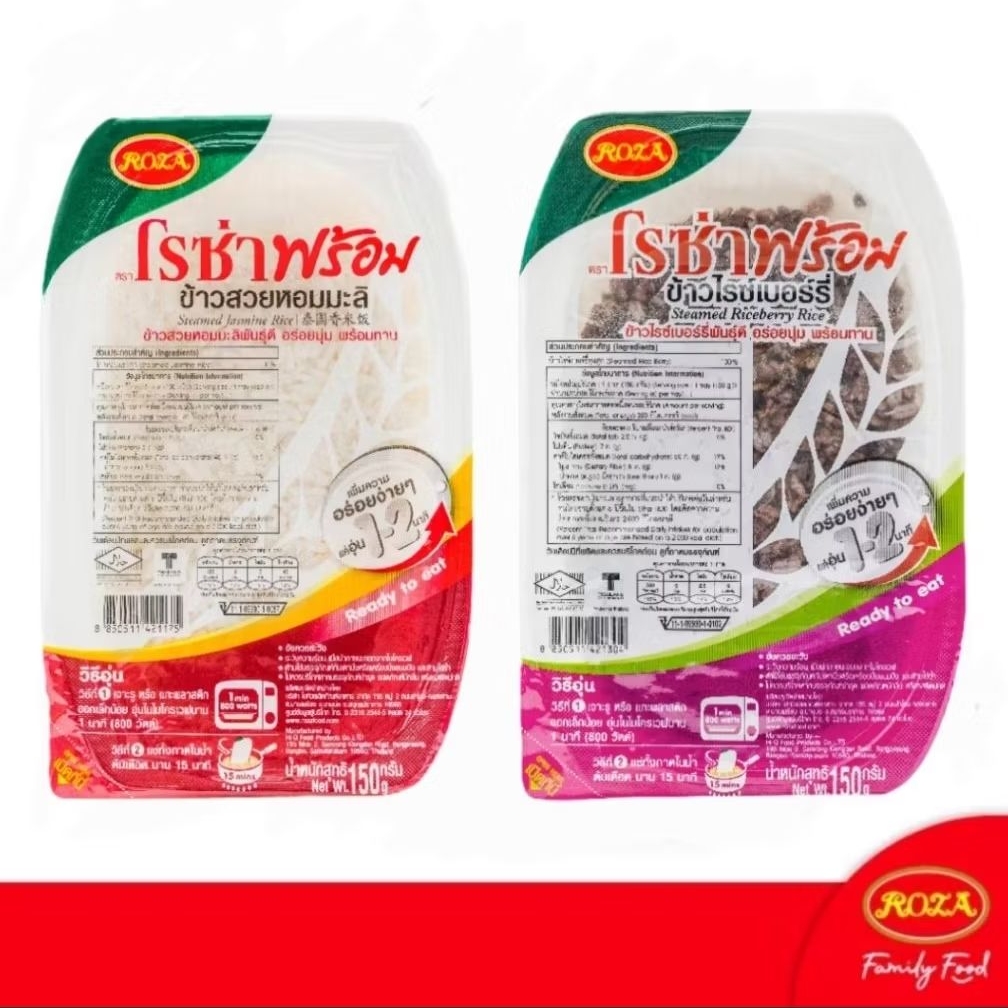 โรซ่าพร้อม อาหารพร้อมทาน ข้าวสวยหอมมะลิ,ข้าวไรซ์เบอร์รี่เปิดฝาทานได้เลย ขนาด 150 กรัม