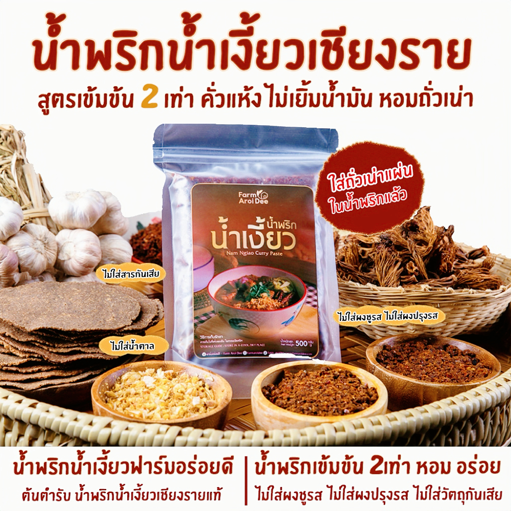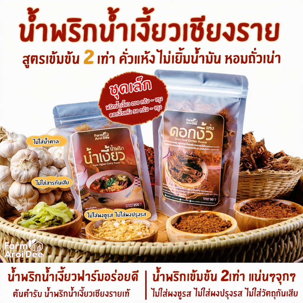 ชุดใหญ่คู่(พริกน้ำเงี้ยว500gx2ถุง+ดอกงิ้ว100gx2ถุง) น้ำพริกน้ำเงี้ยวเชียงราย เข้มข้น ไม่เยิ้มน้ำมัน