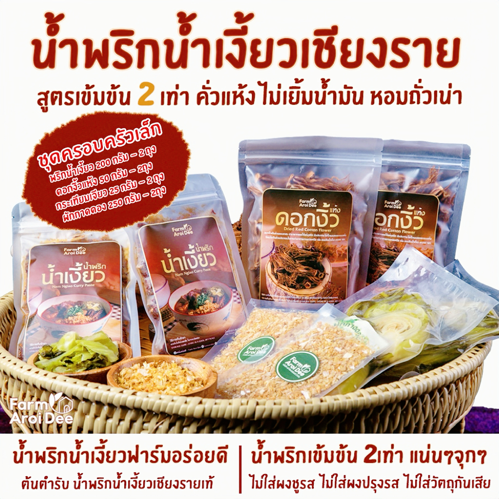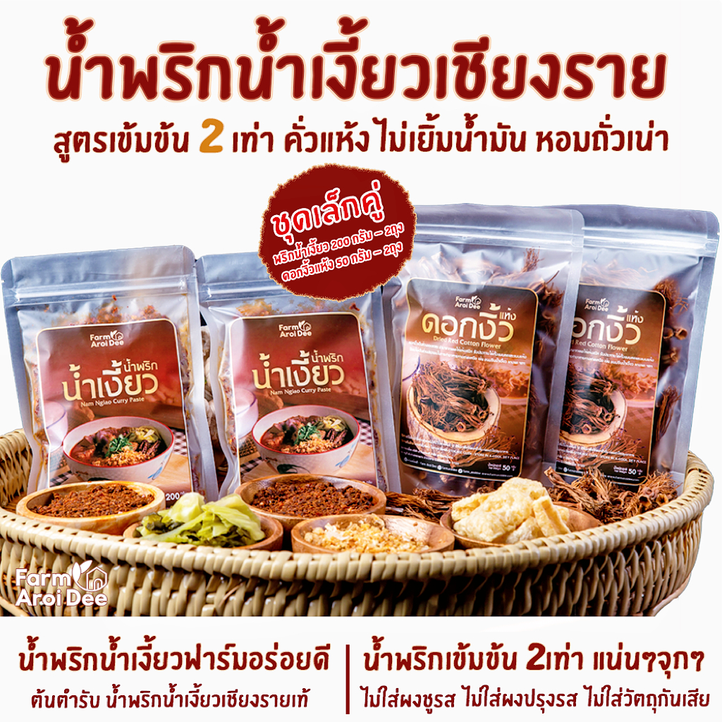 ชุดทำน้ำเงี้ยว(ชุดตัวเลือก พริกน้ำเงี้ยว200กรัม) พริกน้ำเงี้ยวเชียงราย เข้มข้น2เท่า ไม่เยิ้มน้ำมัน