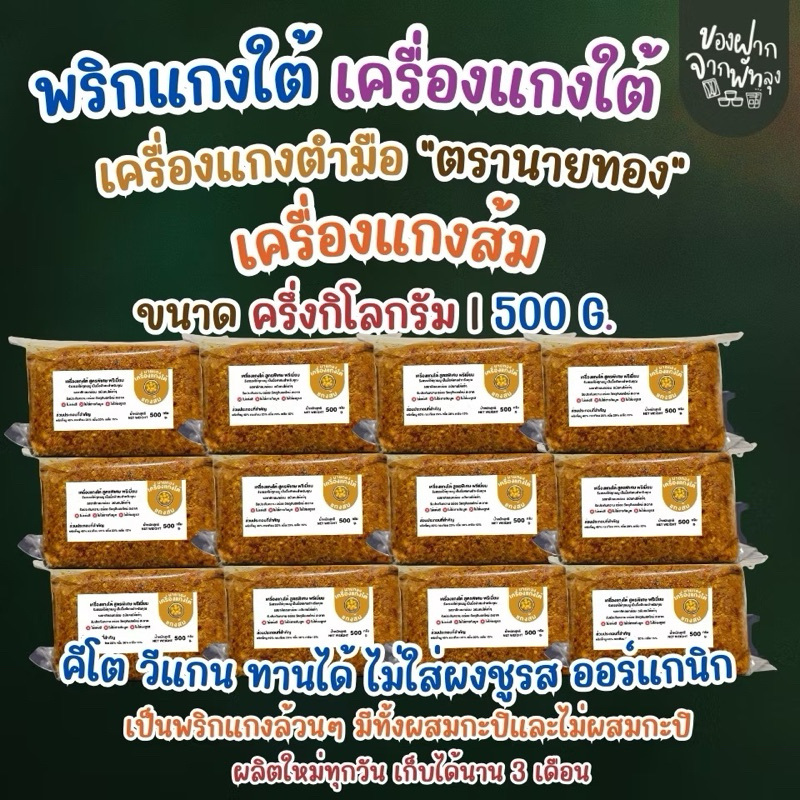กะปิแกงพรีเมี่ยมและเครื่องแกงใต้ตำมือตรานายทอง ขนาดครึ่งกิโลหรือ500กรัม สินค้าพร้อมจัดส่ง สดใหม่สะอาด สินค้าคุณภาพ