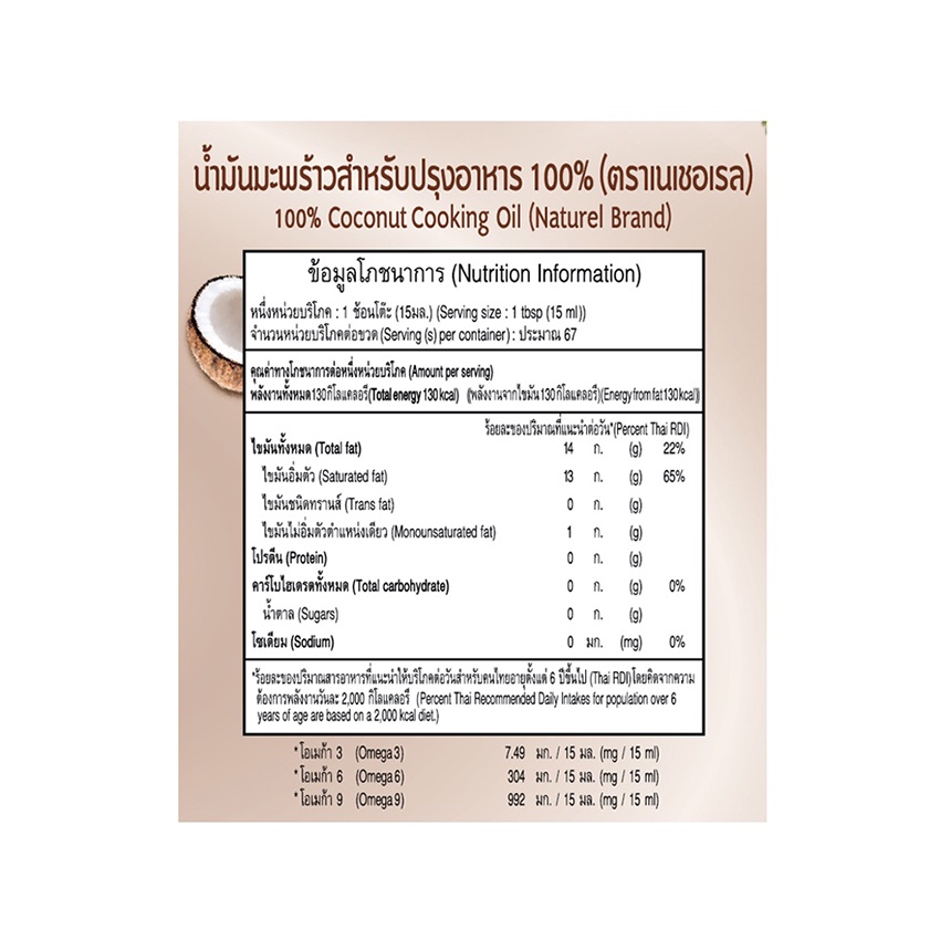 [ทั้งหมด 2 ชิ้น] เนเชอเรล น้ำมันมะพร้าว 1 ลิตร NATUREL COCONUT COOKING OIL 1L.