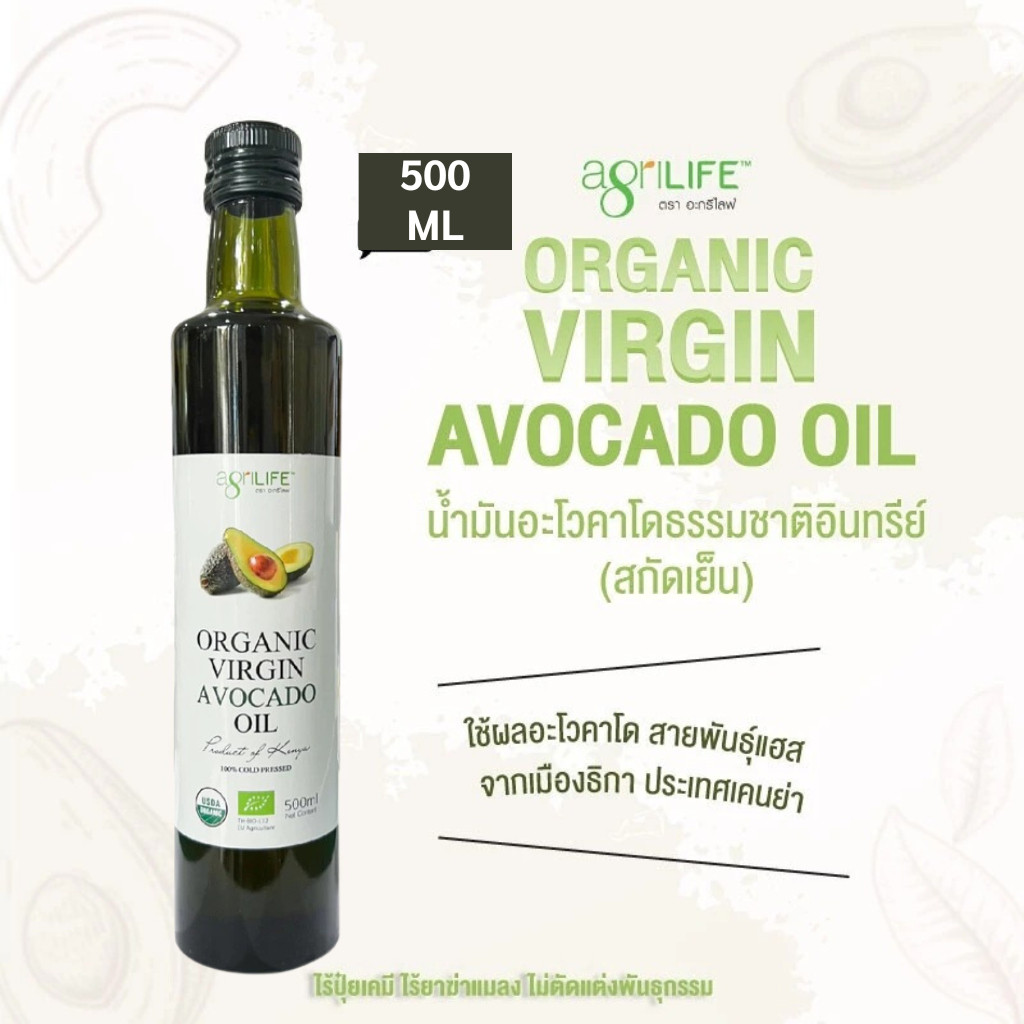 Agrilife ตราอะกรีไลฟ์ น้ำมันอะโวคาโดธรรมชาติ(สกัดเย็น) Organic Virgin Avocado Oil 500ml.