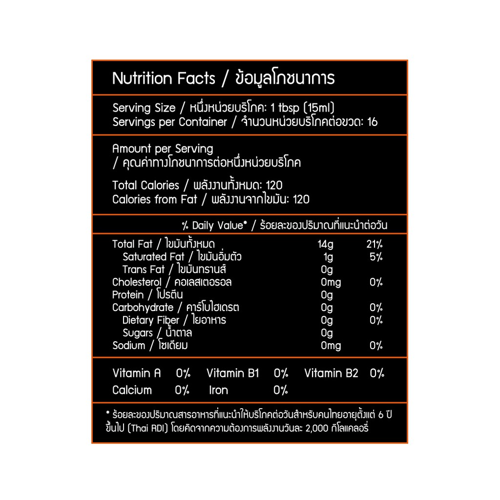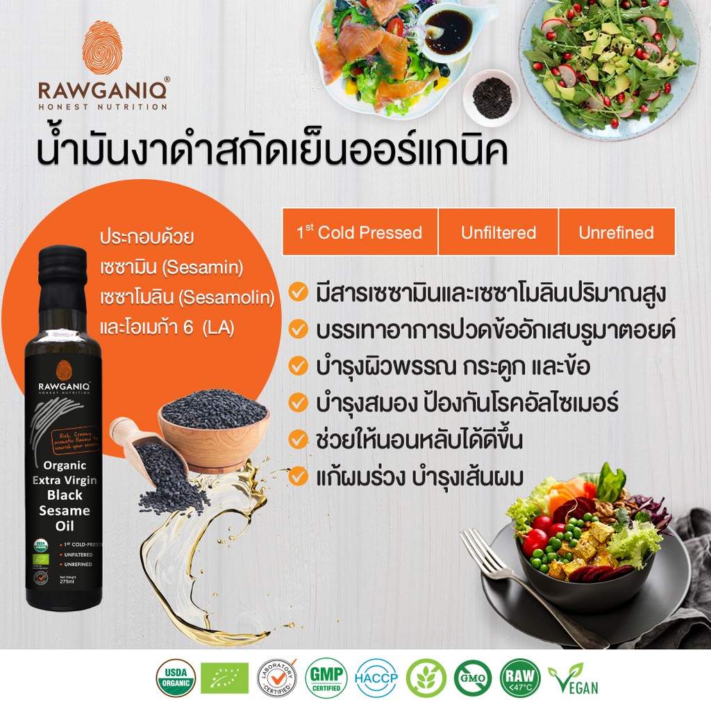 น้ำมันเมล็ดงาดำสกัดเย็นออร์แกนิค ไม่ผ่านกรรมวิธี ไม่กรอง 275 มล.Organic Extra Virgin Black Sesame Seed Oil, Cold Pressed