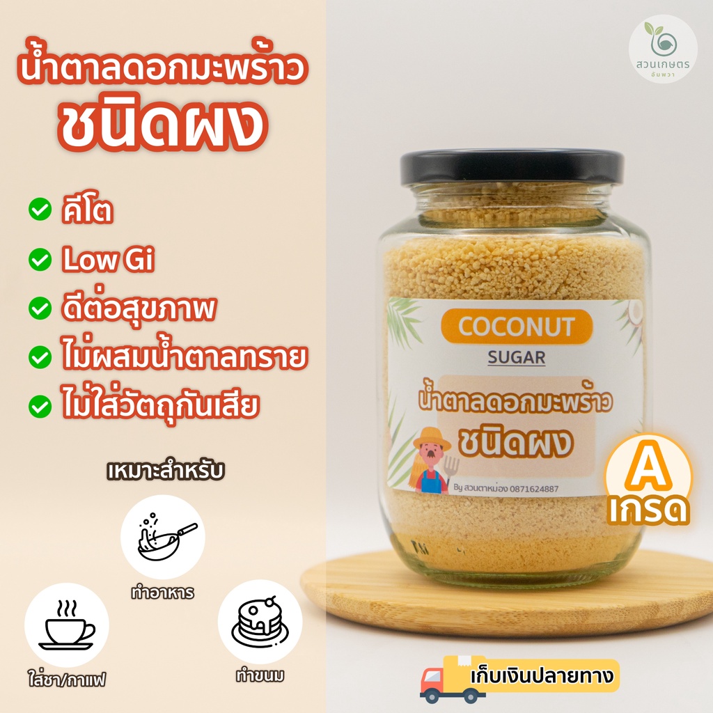 [ 250กรัม ] ส่งฟรี น้ำตาลมะพร้าว ออร์แกนิคแท้100% ชนิดผง ตราสวนเกษตรอัมพวา สูตรคีโต GIต่ำ เบาหวานทานได้