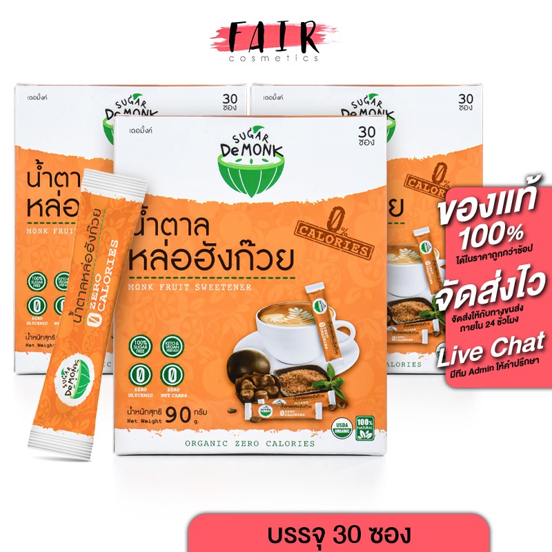 [3 กล่อง][แบบซอง] Sugar De Monk Sachet น้ำตาลคีโต หล่อฮังก๊วย [30 ซอง] น้ำตาล คีโต เพื่อสุขภาพ