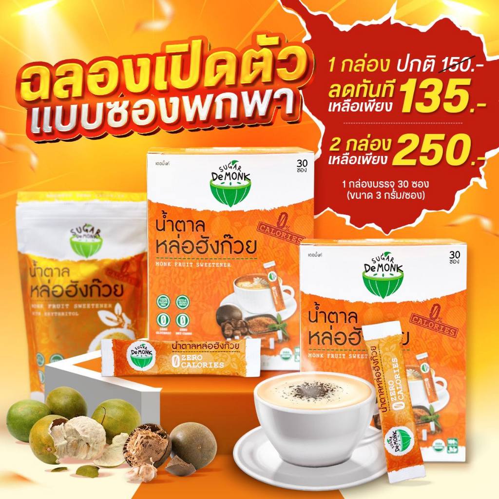[2 กล่อง][แบบซอง] Sugar De Monk Sachet น้ำตาลคีโต หล่อฮังก๊วย [30 ซอง] น้ำตาล คีโต เพื่อสุขภาพ