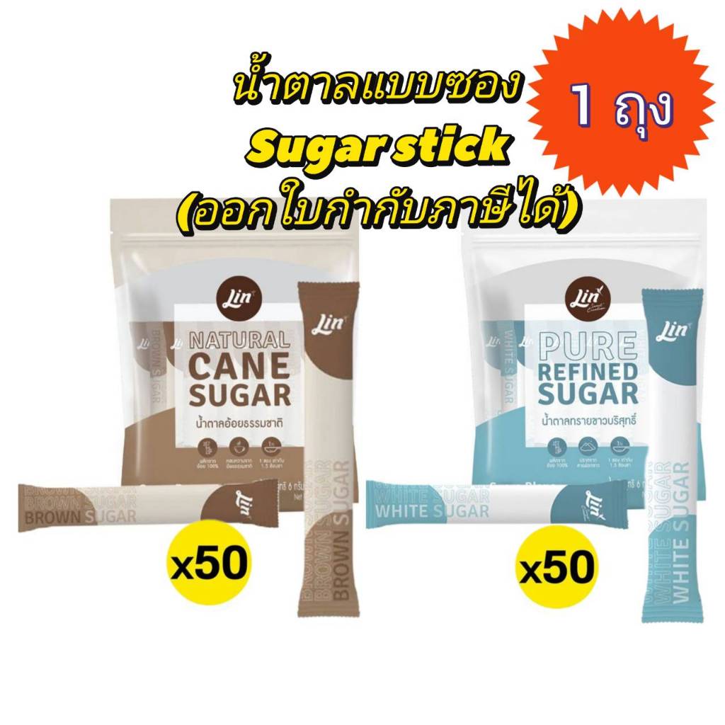 (1 ถุง มีส่งทันที) น้ำตาลซอง มี 2 ตัวเลือก ทรายขาว หรืออ้อย แบรน ลิน ออกใบกำกับภาษีได้