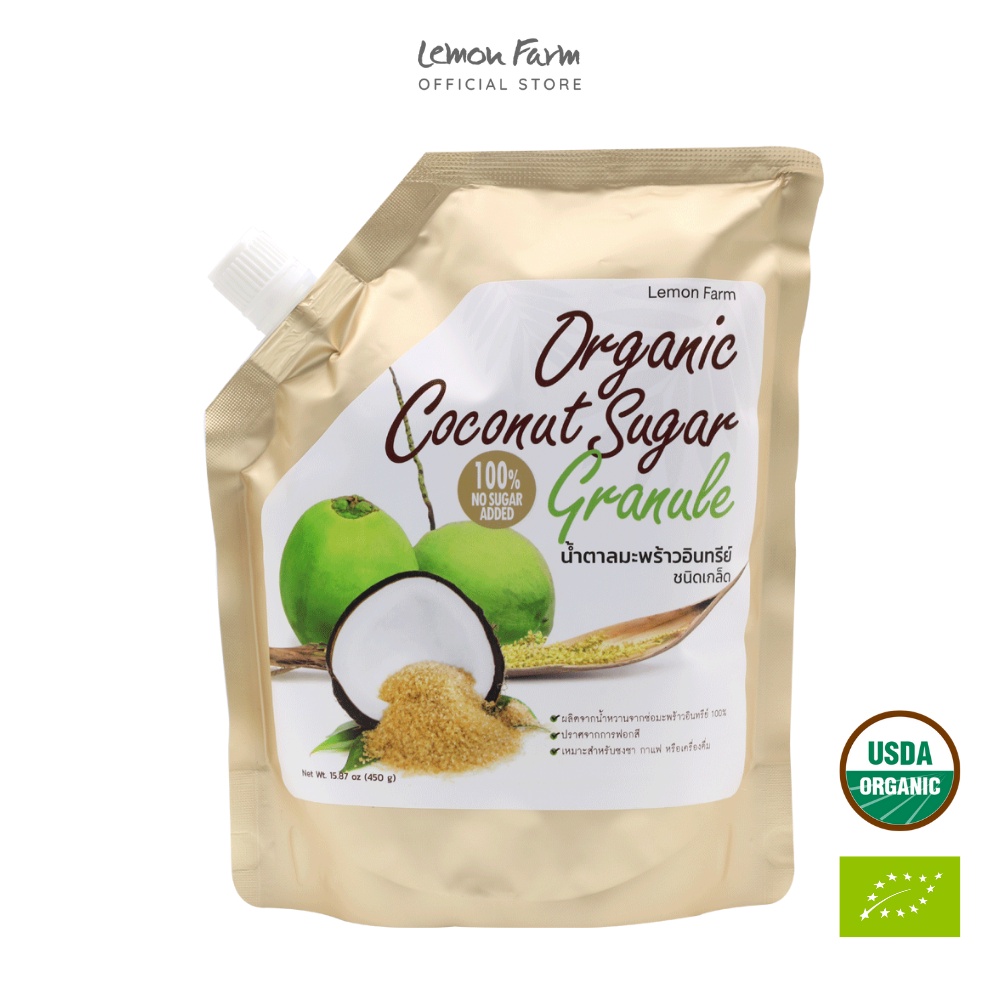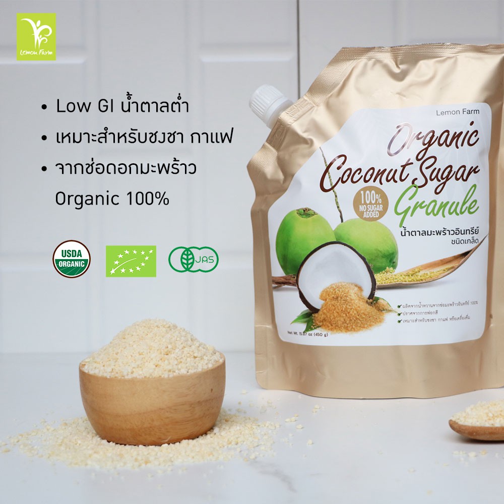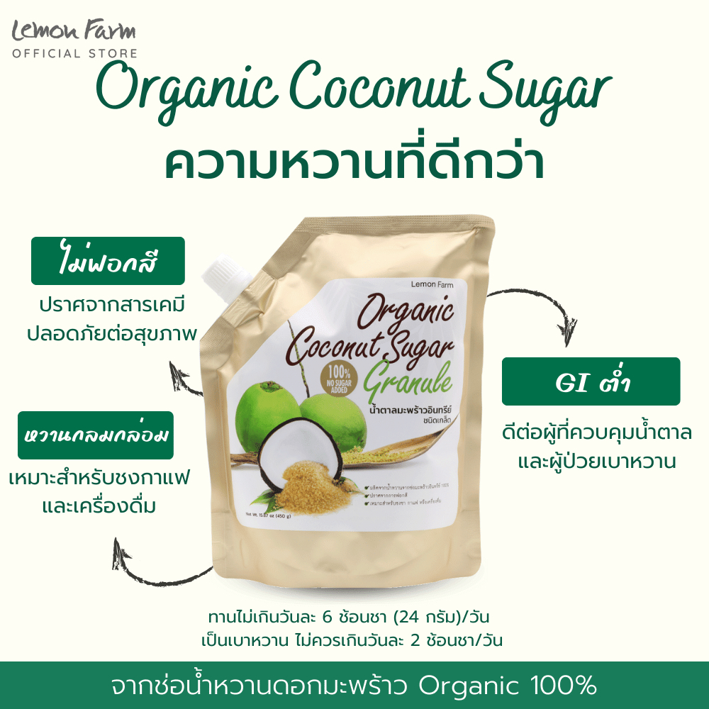 น้ำตาลมะพร้าว Organic ชนิดเกล็ด Low GI 450 g Lemon Farm เลมอนฟาร์ม