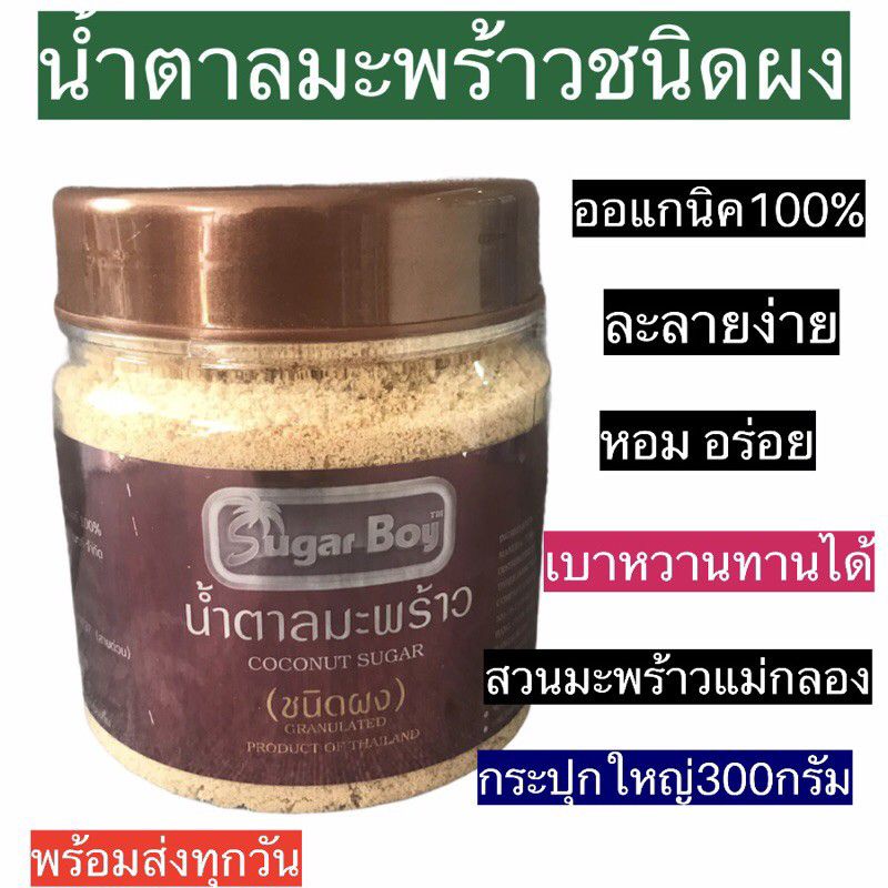 น้ำตาลมะพร้าวผง หอมหวาน GIต่ำ เบาหวานทานได้ น้ำตาลดอกมะพร้าว กระปุกใหญ่ 300กรัม ออแกนิค100% จากสวนมะพร้าวแม่กลองแท้4289