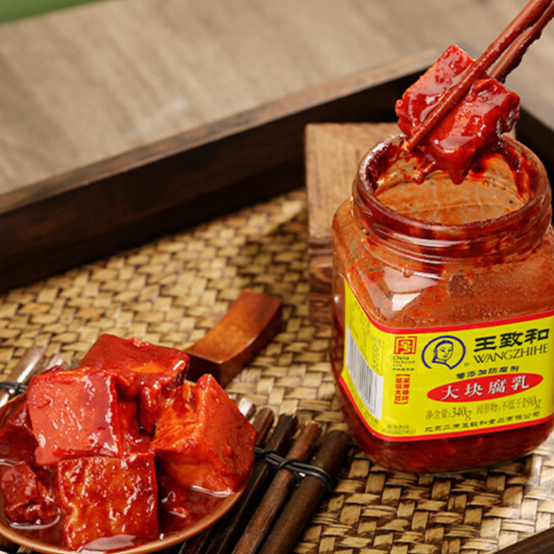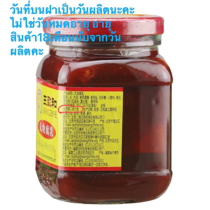 D18เต้าหู้ยี้แดง เต้าหู้ยี้ ตราหวังจื้อเหอ(王至和大块腐乳) ขนาด 340 g เต้าหู้ยี้สูตรต้นตำรับ เนื้อเนียนอร่อย ต้องลอง