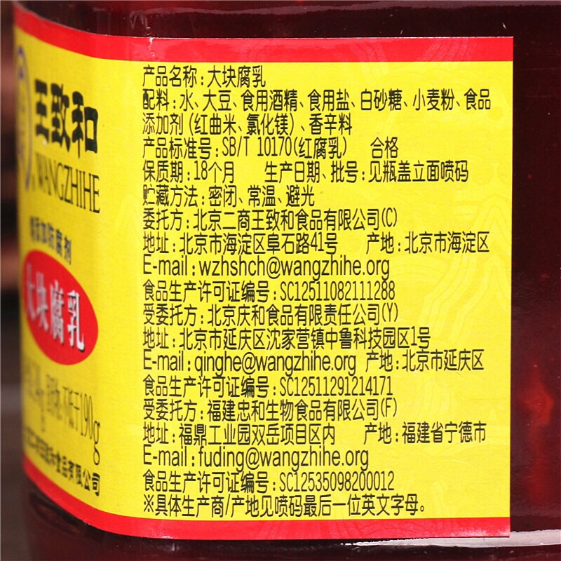 เต้าหู้ยี้แดง เนียนนุ่ม สามารถทานคู่กับโจ๊กได้ 340g 王致和大块腐乳