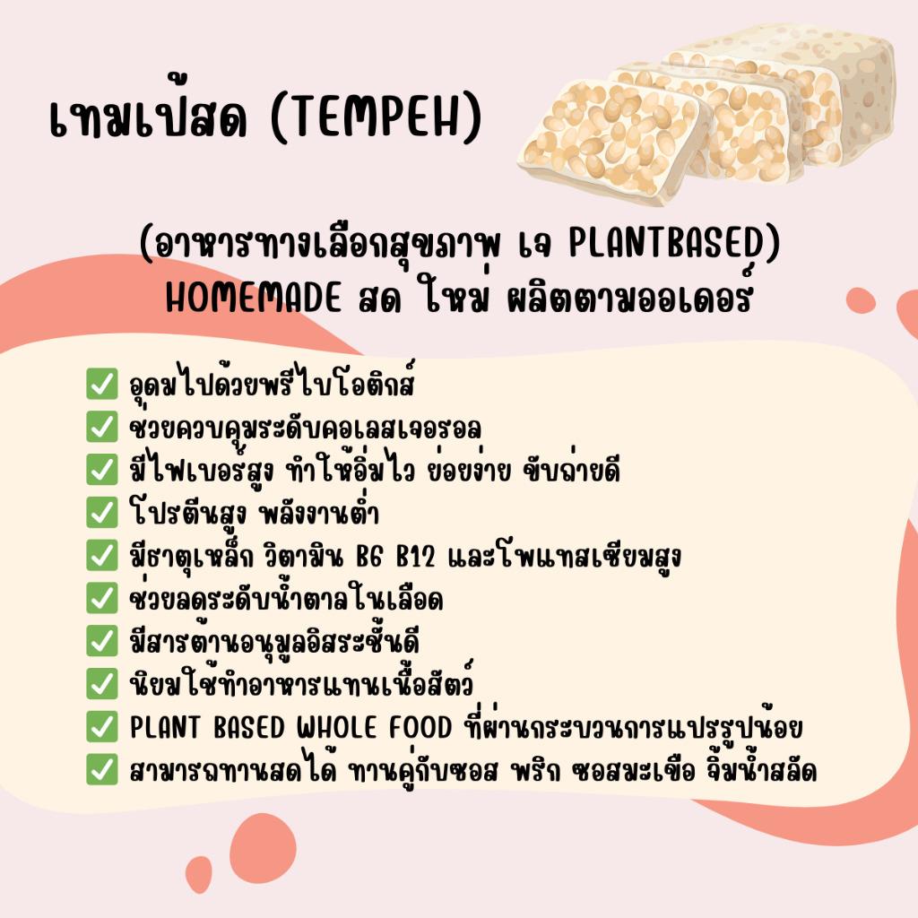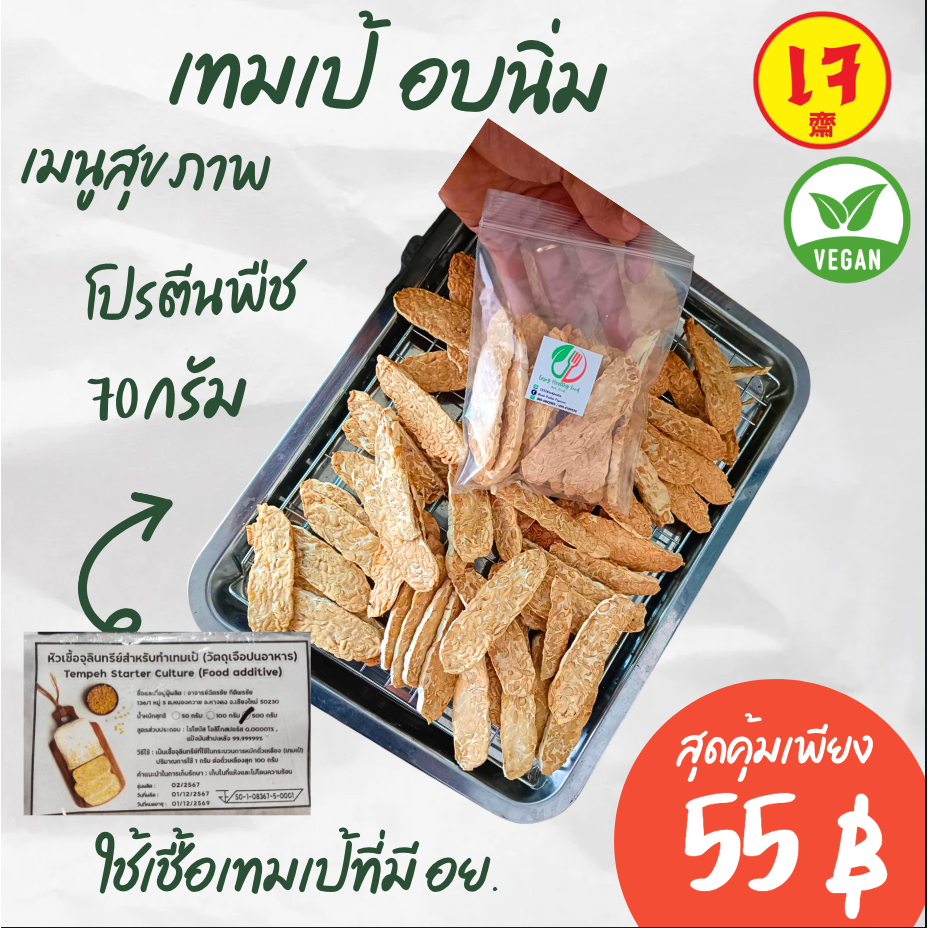 เทมเป้อบนิ่ม 70 กรัม แผ่นบาง หนึบหนับ *พร้อมทาน* (EnjoyHealthyFood)ใช้เชื้อบ่มที่มีอย.