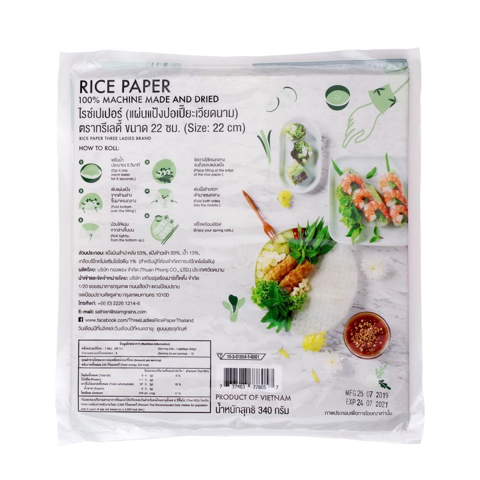 ทรีเลดี้ ใบเมี่ยงญวณ แป้งเวียดนาม (แผ่นสี่เหลี่ยม) 340g. ยกลัง (44 ห่อ)