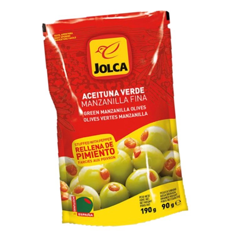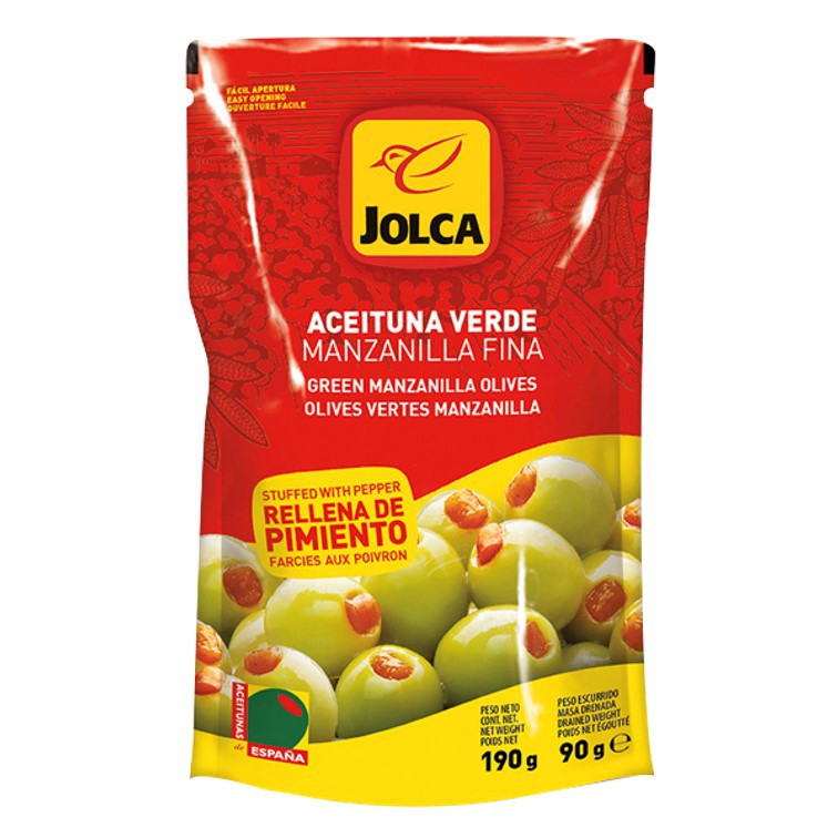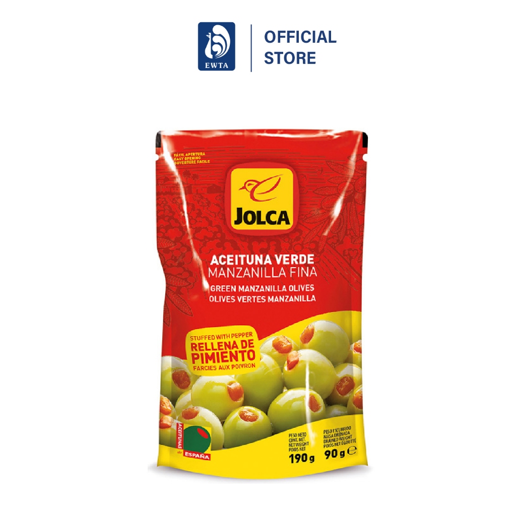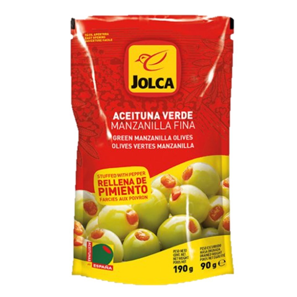(ซื้อ 2 ลด 50%) JOLCA PEPPER PASTE STUFFED MANZANILLA OLIVES 190 g. มะกอกเขียวสอดไส้พริก