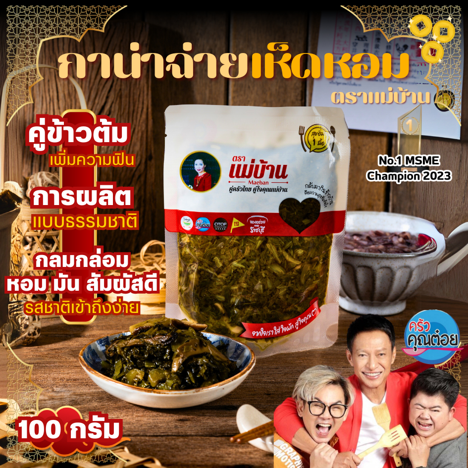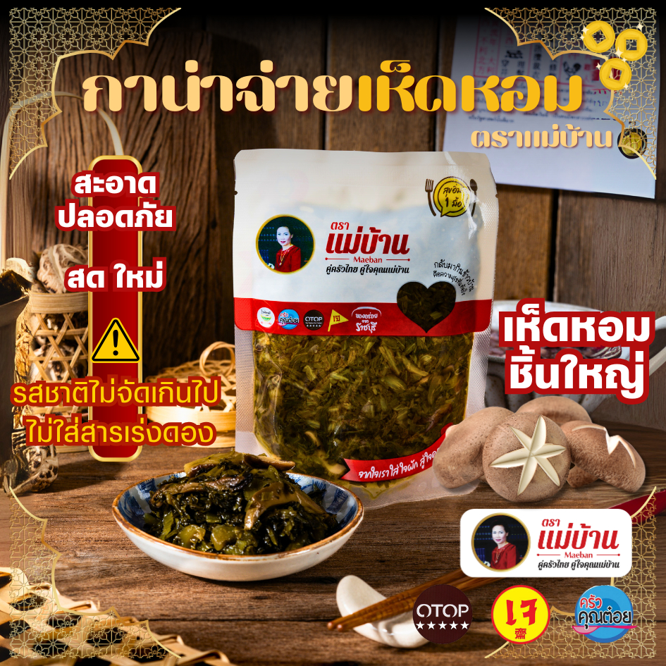 [สดใหม่] ตราแม่บ้าน กาน่าฉ่าย เห็ดหอม 100 กรัม ผลิตสดใหม่ อาหารเจ เครื่องเคียง ข้าวต้ม